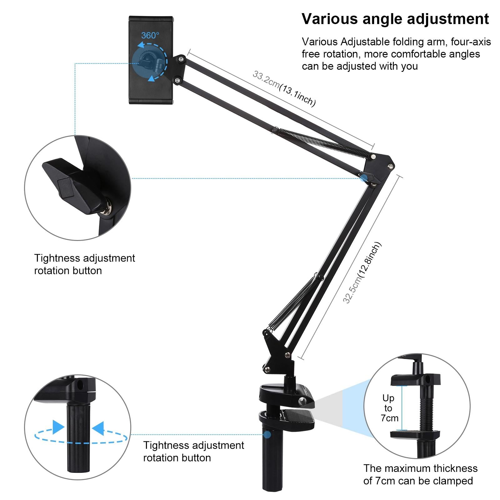 The base clamp will be compatible with any different thicknesses table/platform. It enables you to release your hands, which is very practical lazy mount holder.