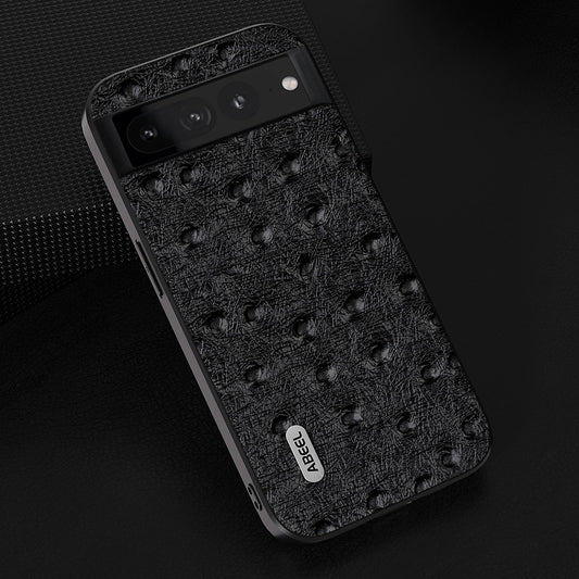 Uniqkart for Google Pixel 8 Ostrich Texture Phone Case Genuine Cow Leather+PC+TPU Back Cover - Black