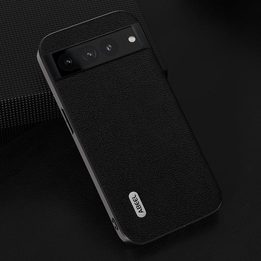 Uniqkart for Google Pixel 8 Genuine Cow Leather+PC+TPU Back Cover Litchi Texture Mobile Case - Black