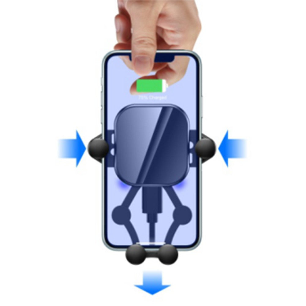 •Place the phone in the holder and the wireless charger will automatically clamp firmly and charges the device