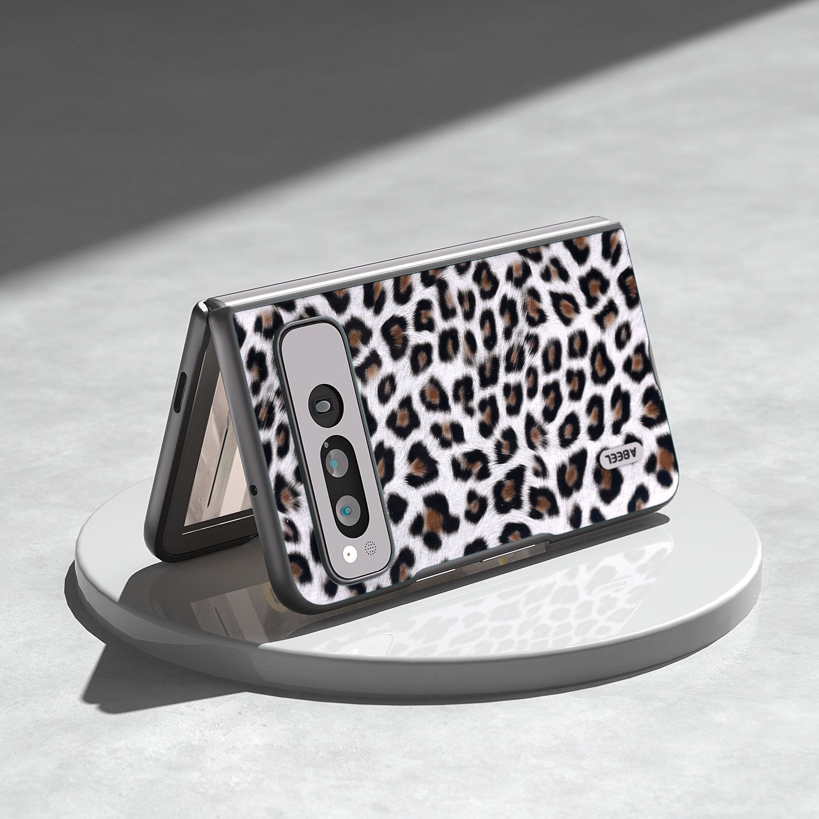Uniqkart for Google Pixel Fold Anti-Scratch Cover Leopard Pattern PU Leather+PC Phone Case - Silver