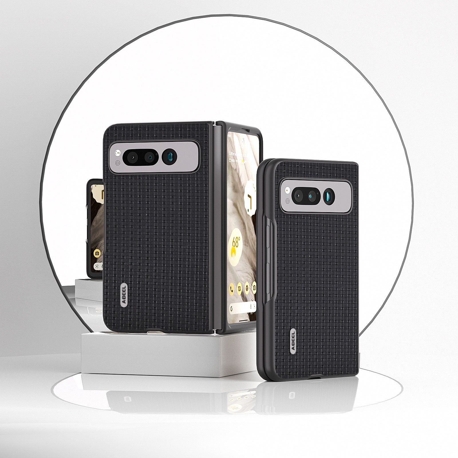 Uniqkart For Google Pixel Fold Cowhide Leather Coated PC Phone Case Folding Phone Cover - Black