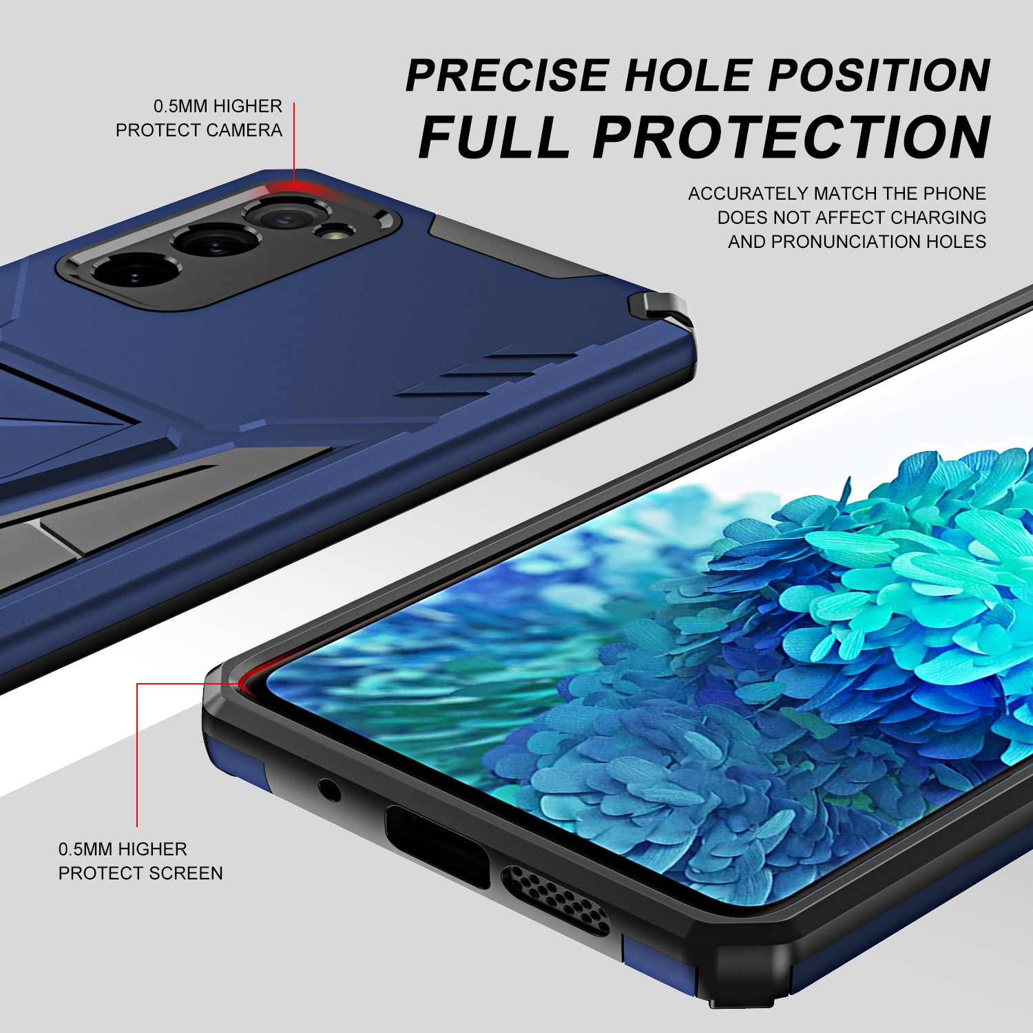 Anti-Fall V-Shaped Kickstand TPU + PC Hybrid Phone Cover Case with Built-in Metal Sheet for Samsung Galaxy S20 FE 2022/S20 FE 4G/S20 FE 5G/S20 Lite - Blue
