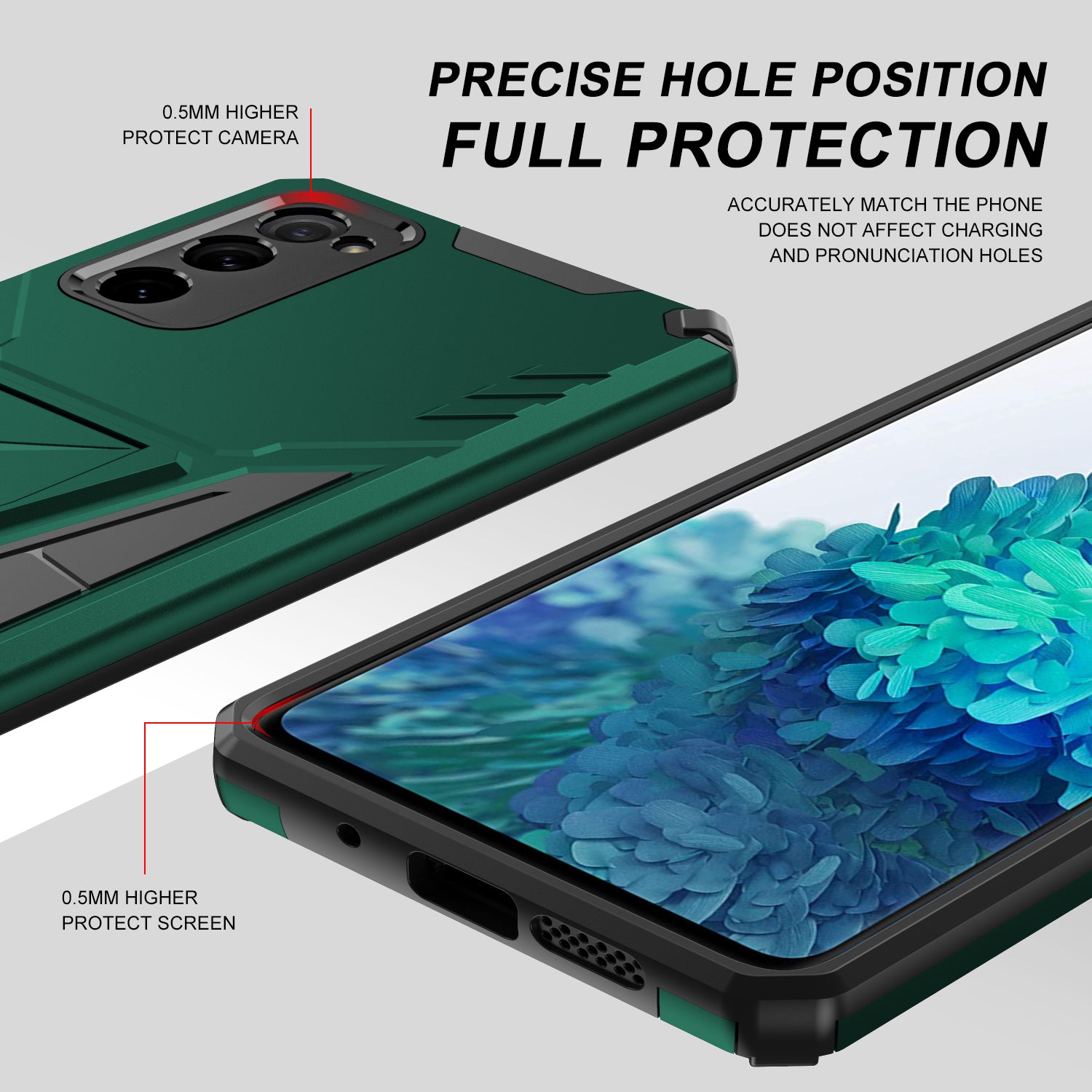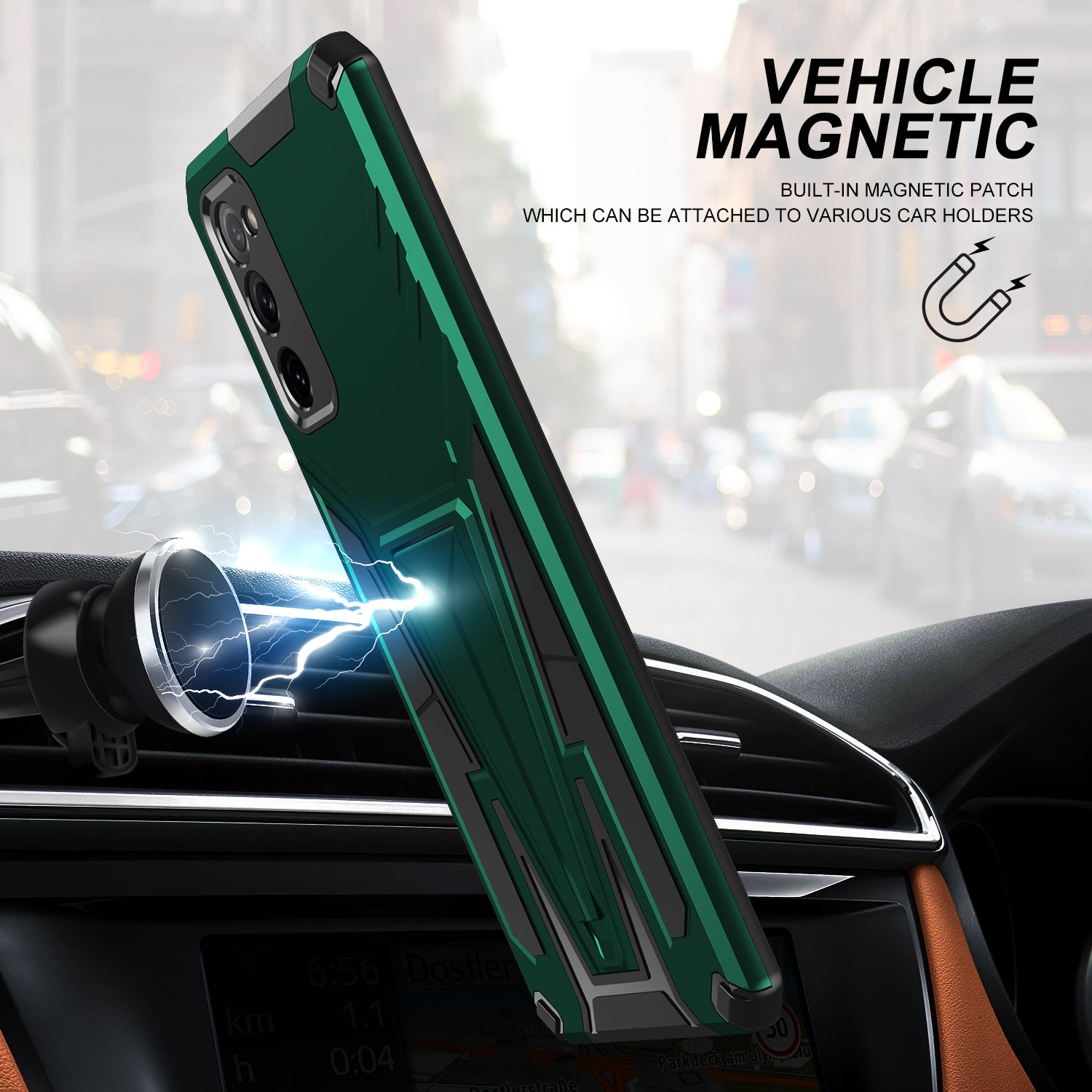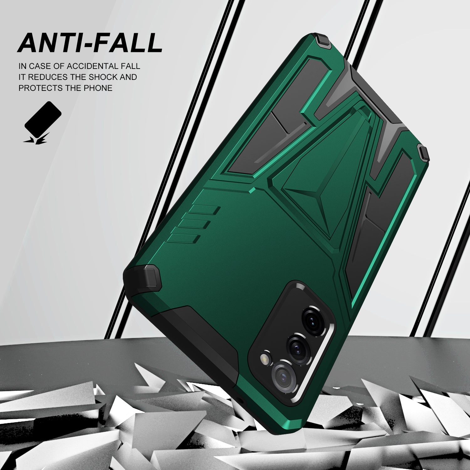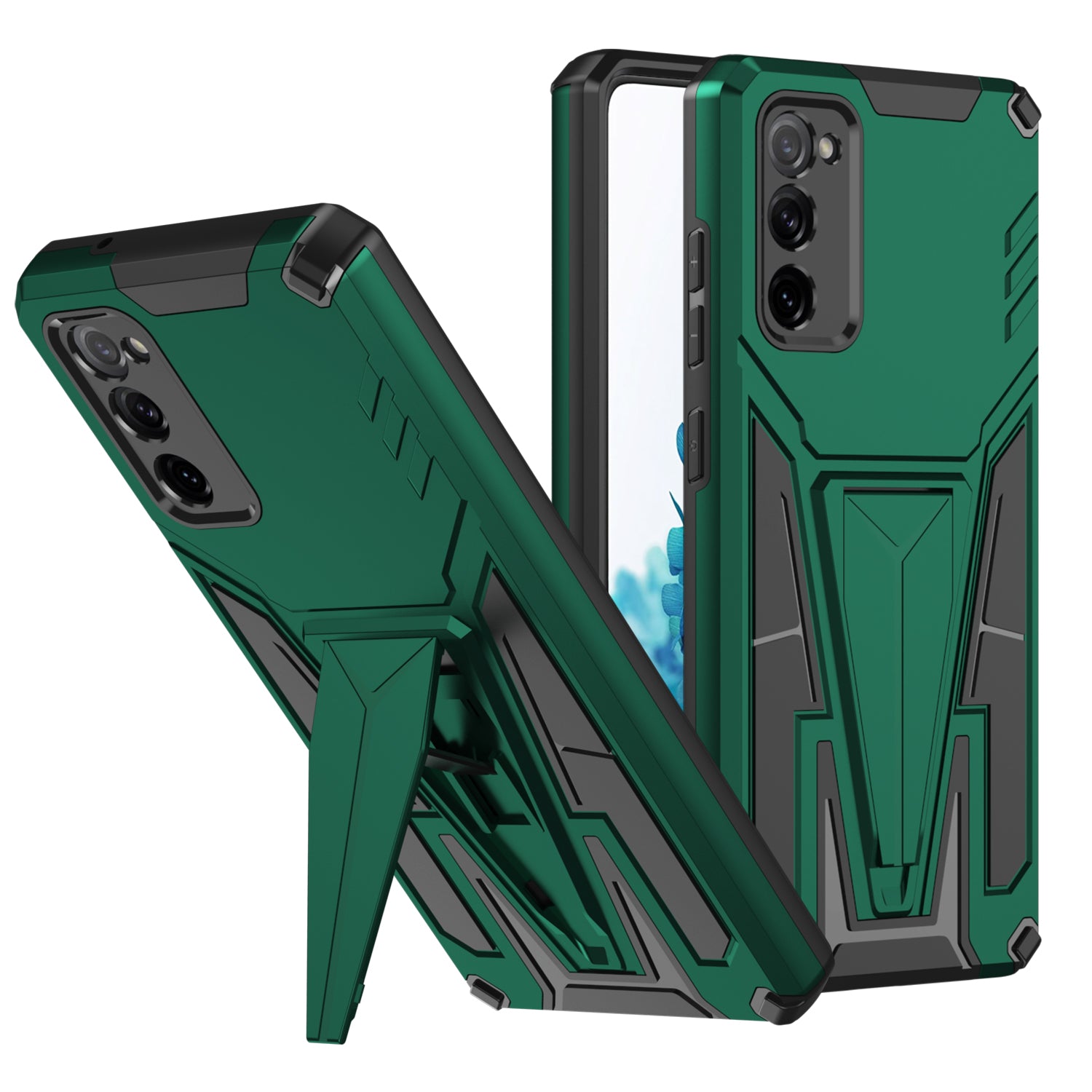 Anti-Fall V-Shaped Kickstand TPU + PC Hybrid Phone Cover Case with Built-in Metal Sheet for Samsung Galaxy S20 FE 2022/S20 FE 4G/S20 FE 5G/S20 Lite - Green