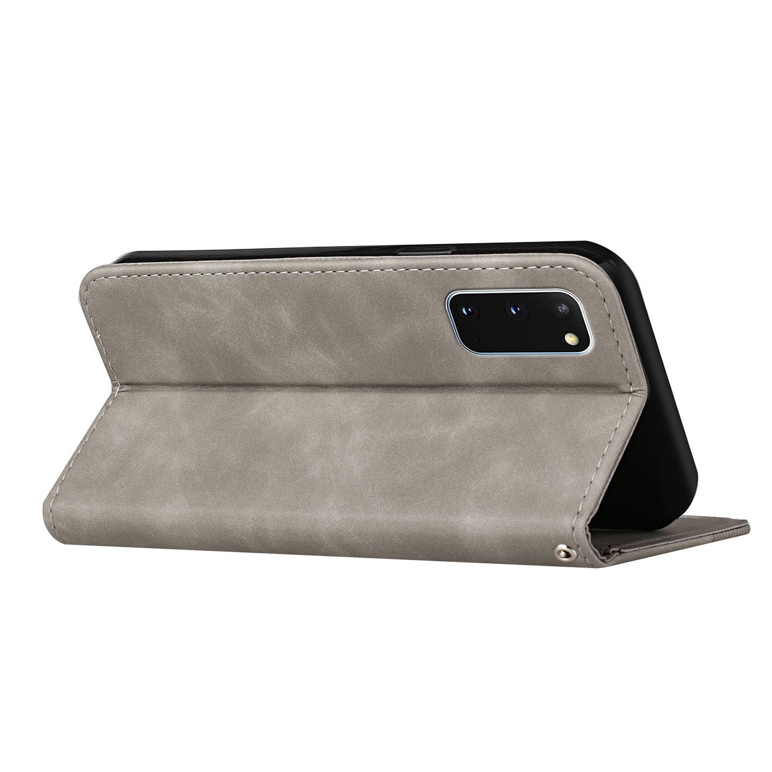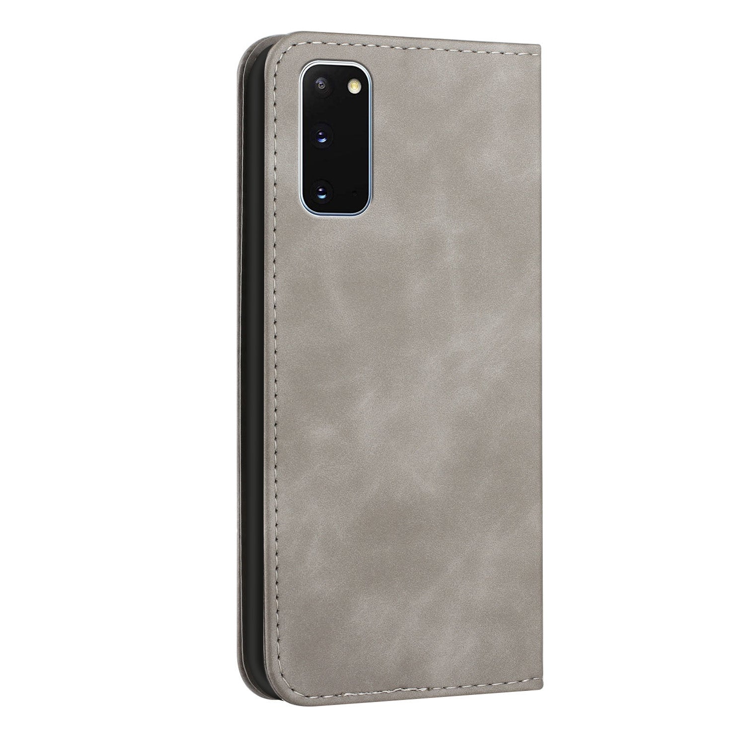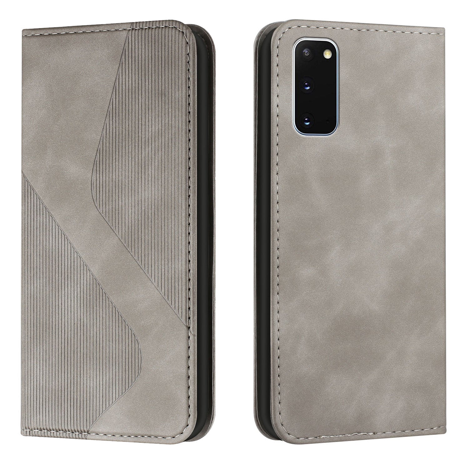 Anti-scratch Auto-absorbed Magnetic Closure S-shaped Texture Leather Flip Wallet Stand Case for Samsung Galaxy S20 4G/S20 5G - Grey