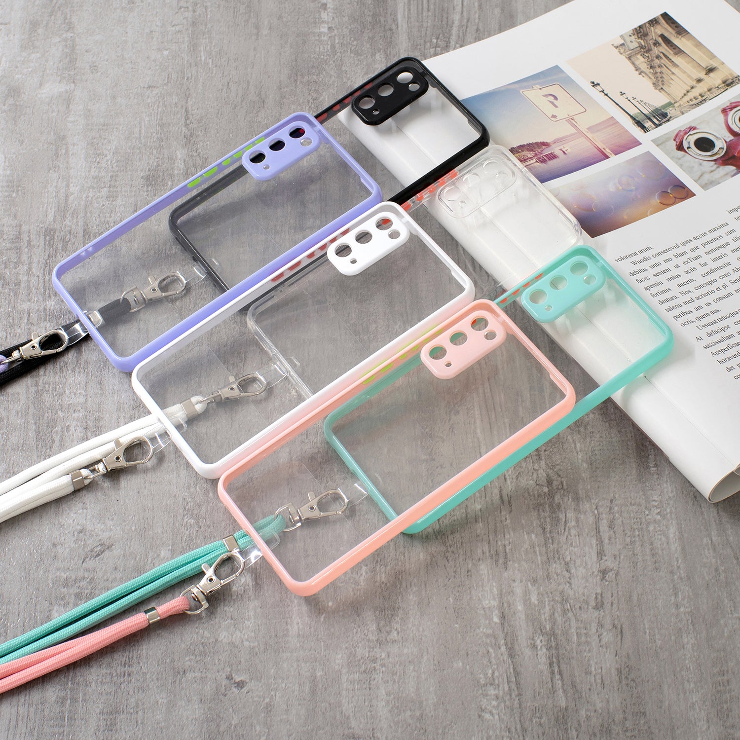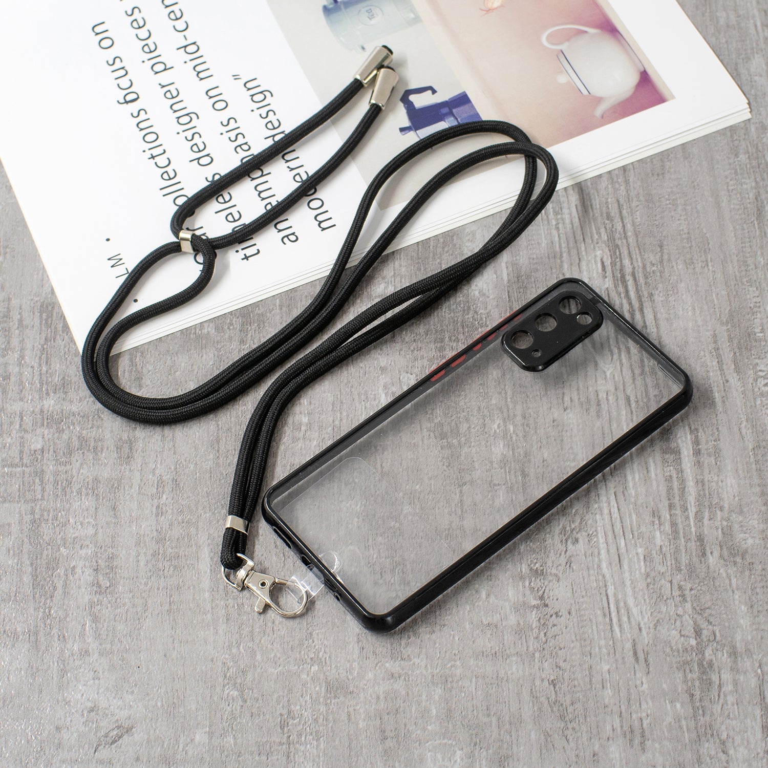Anti-Scratch Shockproof Clear Acrylic + TPU Bumper Protective Case with Lanyard for Samsung Galaxy S20 4G/S20 5G - Black