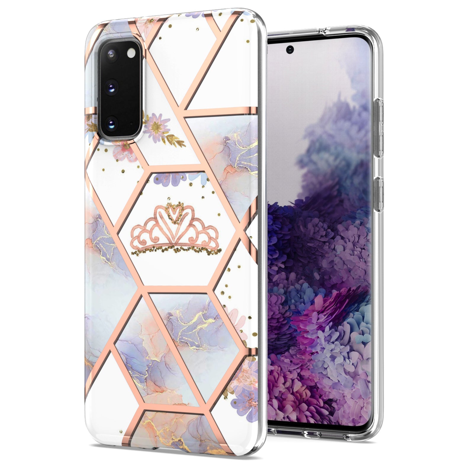 Anti-scratch Stylish Marble Design IMD IML Electroplating Soft TPU Phone Case Cover for Samsung Galaxy S20 4G/S20 5G - Crown