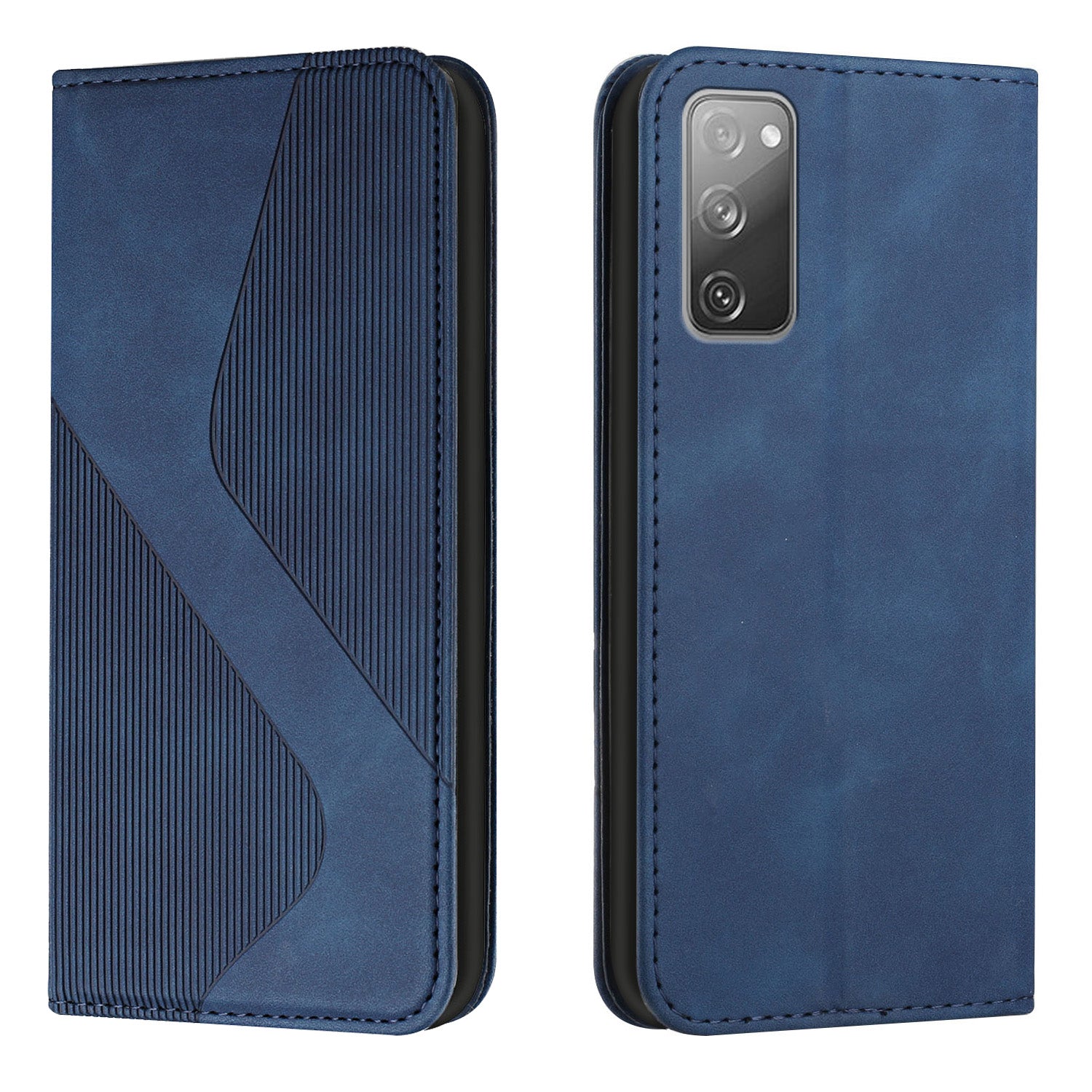 Auto-absorbed Magnetic Closure S-shaped Texture Leather Flip Wallet Stand Case for Samsung Galaxy S20 FE/S20 FE 5G/S20 Lite/S20 FE 2022 - Blue