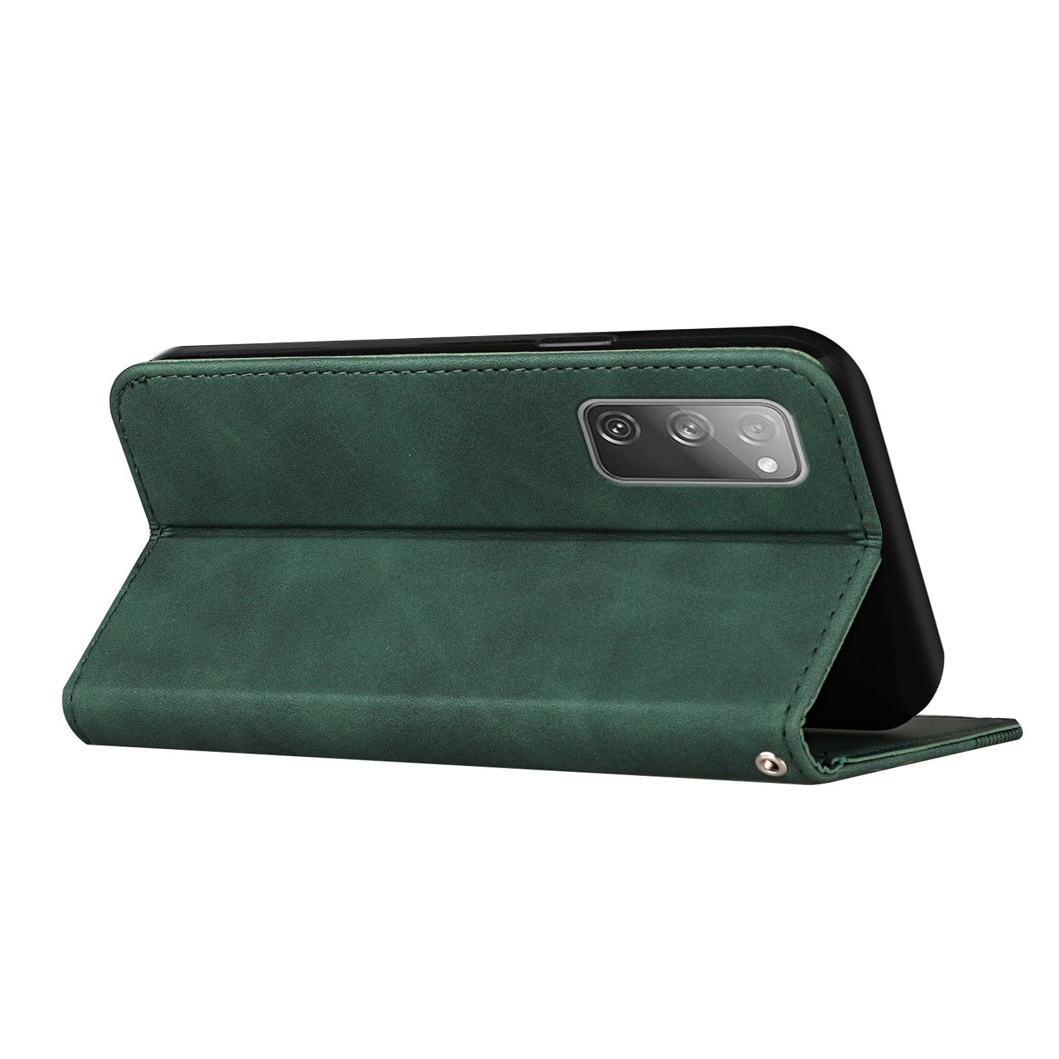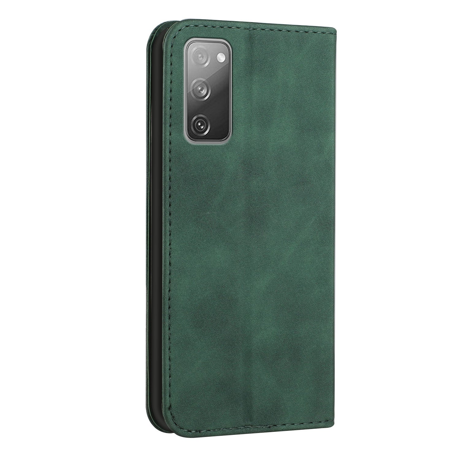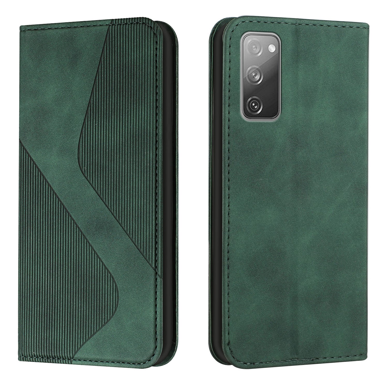 Auto-absorbed Magnetic Closure S-shaped Texture Leather Flip Wallet Stand Case for Samsung Galaxy S20 FE/S20 FE 5G/S20 Lite/S20 FE 2022 - Green