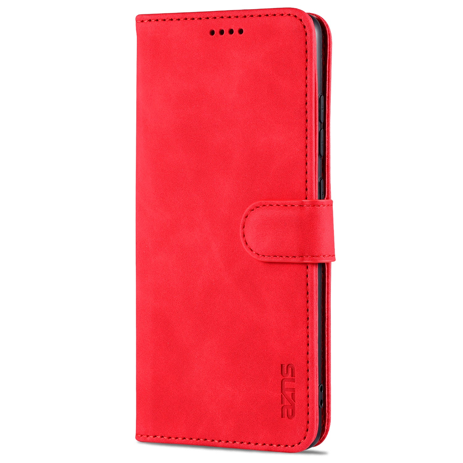 AZNS PU Leather Phone Cover Wallet Stand Case for Samsung Galaxy S20 FE 2022/S20 FE 4G/S20 FE 5G/S20 Lite - Red