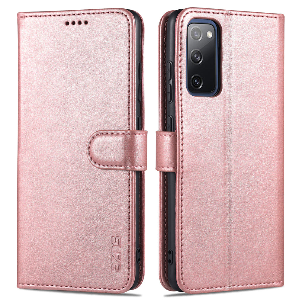 AZNS PU Leather Phone Cover Wallet Stand Case for Samsung Galaxy S20 FE 2022/S20 FE 4G/S20 FE 5G/S20 Lite - Rose Gold