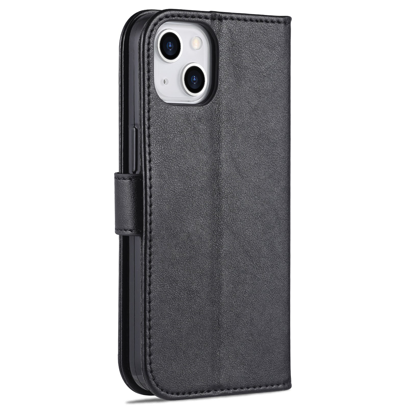 PU Leather Wallet Phone Case for iPhone 15 , Stand Phone Protective Cover - Black
