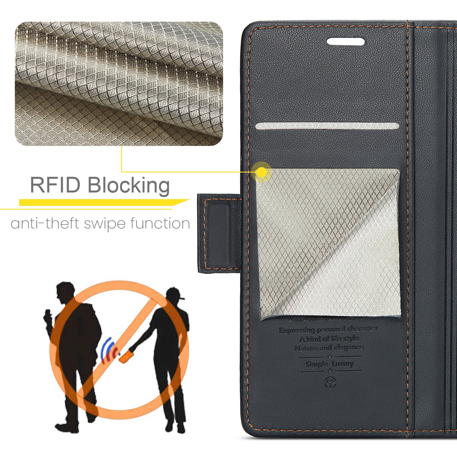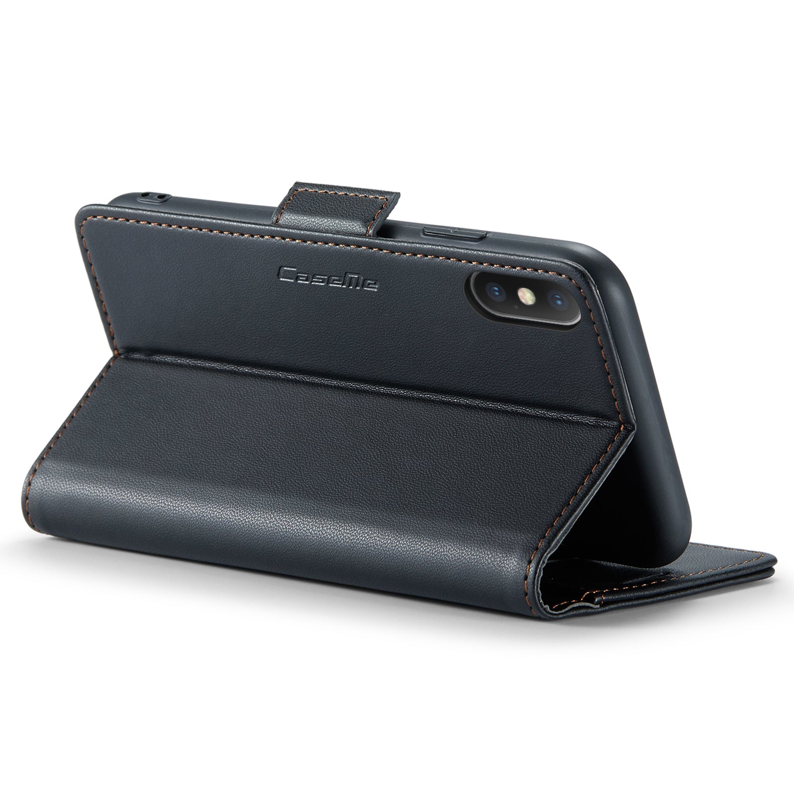 Caseme RFID Blocking Leather Case for iPhone XS , Litchi Texture Stand Wallet Phone Cover - Black