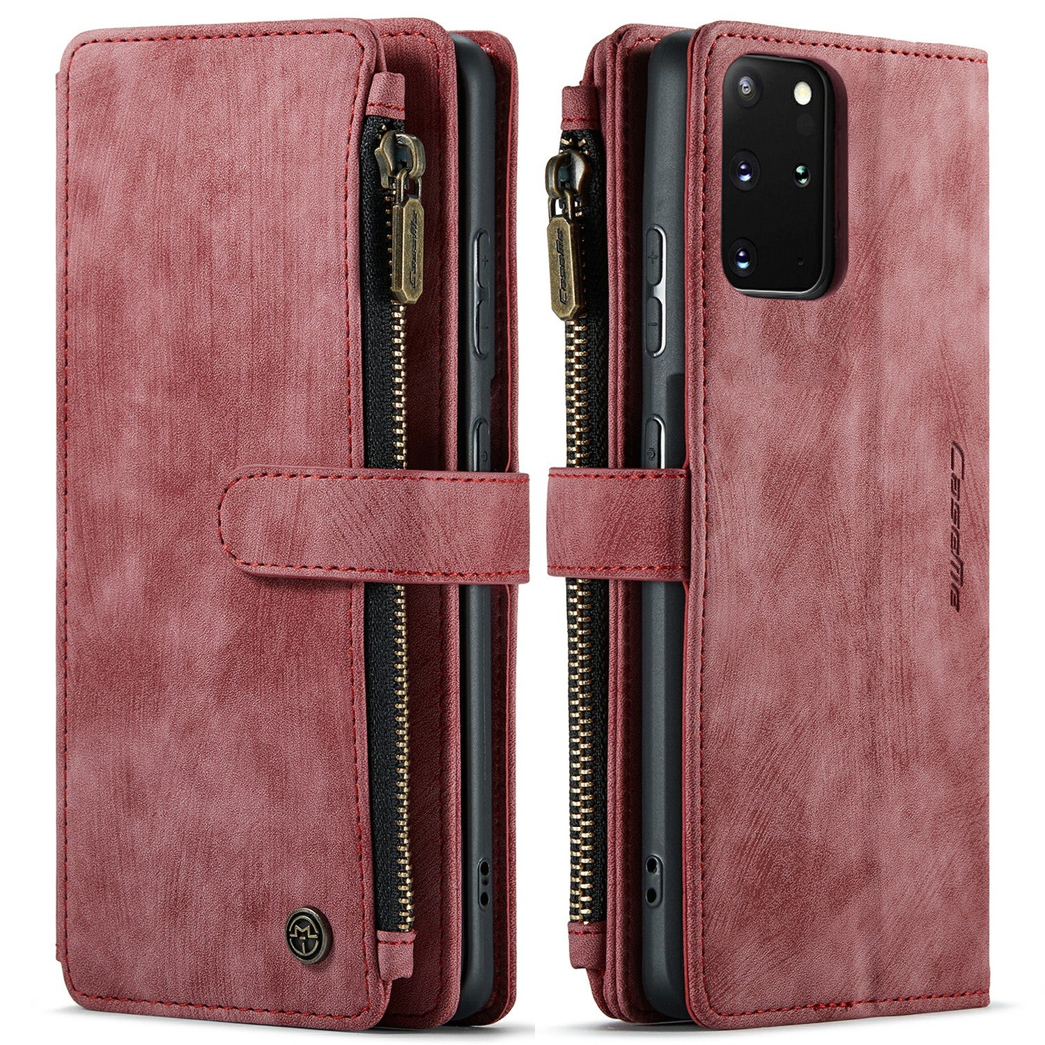 CASEME C30 Series Zipper Pocket Shockproof Built-in 10 Card Slots TPU PU Leather Wallet Phone Protective Case Phone Cover for Samsung Galaxy S20 Plus - Red
