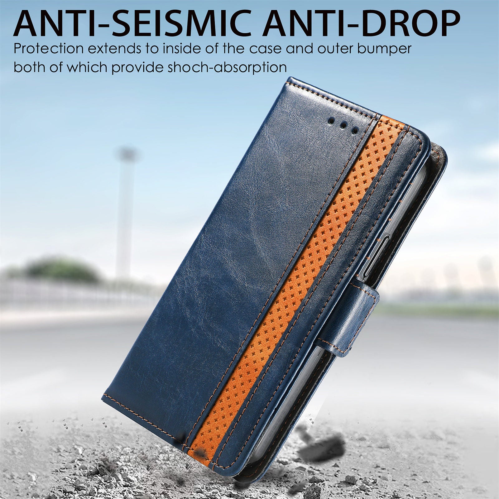 CASENEO 002 Series Scratch-Resistant Anti-Drop Business Style Splicing PU Leather Stand Wallet Case for Samsung Galaxy S20 FE/S20 FE 5G/S20 Lite/S20 FE 2022 - Dark Blue