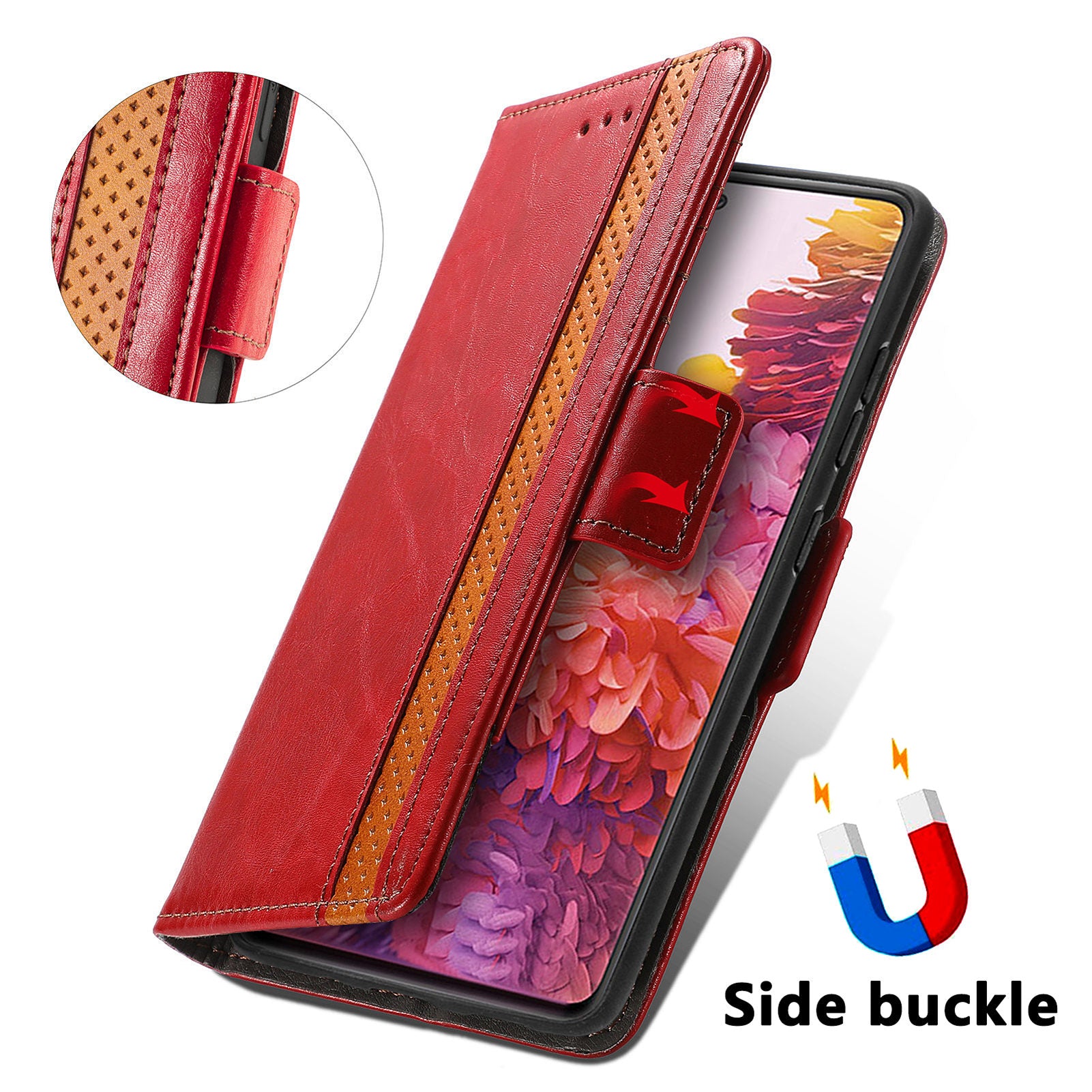 CASENEO 002 Series Scratch-Resistant Anti-Drop Business Style Splicing PU Leather Stand Wallet Case for Samsung Galaxy S20 FE/S20 FE 5G/S20 Lite/S20 FE 2022 - Red
