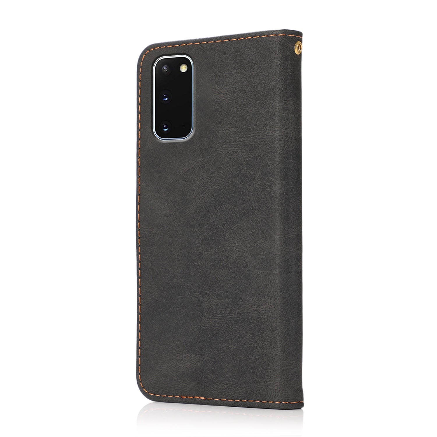 Color Splicing Design PU Leather Cell Phone Full-Protection Wallet Stand Case Shell with Lanyard for Samsung Galaxy S20 4G/S20 5G - Black/Brown