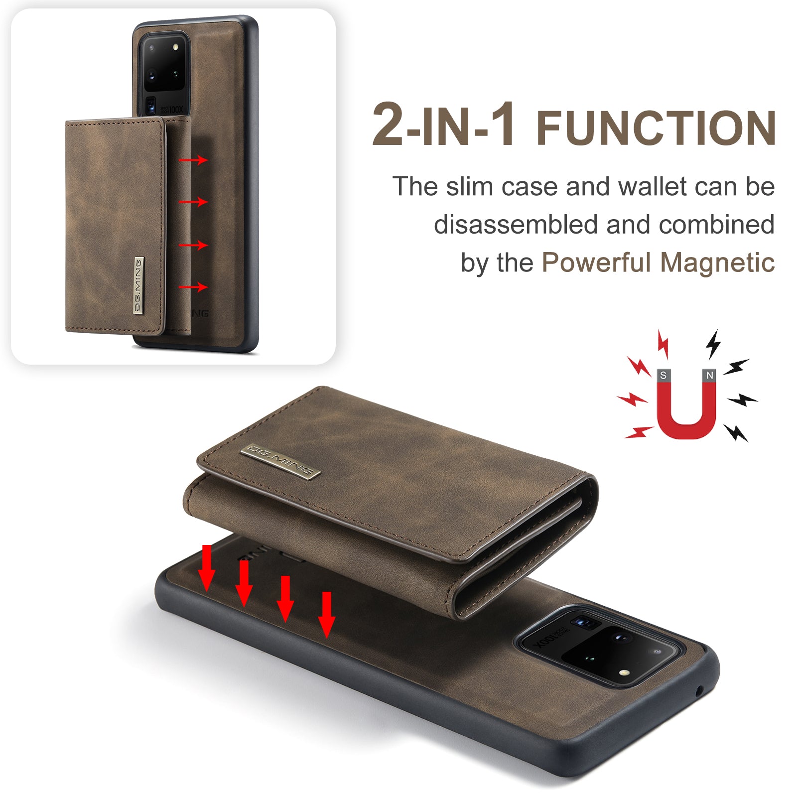DG.MING M1 Series Magnetic Detachable 2-in-1 Leather Coated TPU + PC Hybrid Cover Shell with Wallet Kickstand for Samsung Galaxy S20 Ultra - Coffee