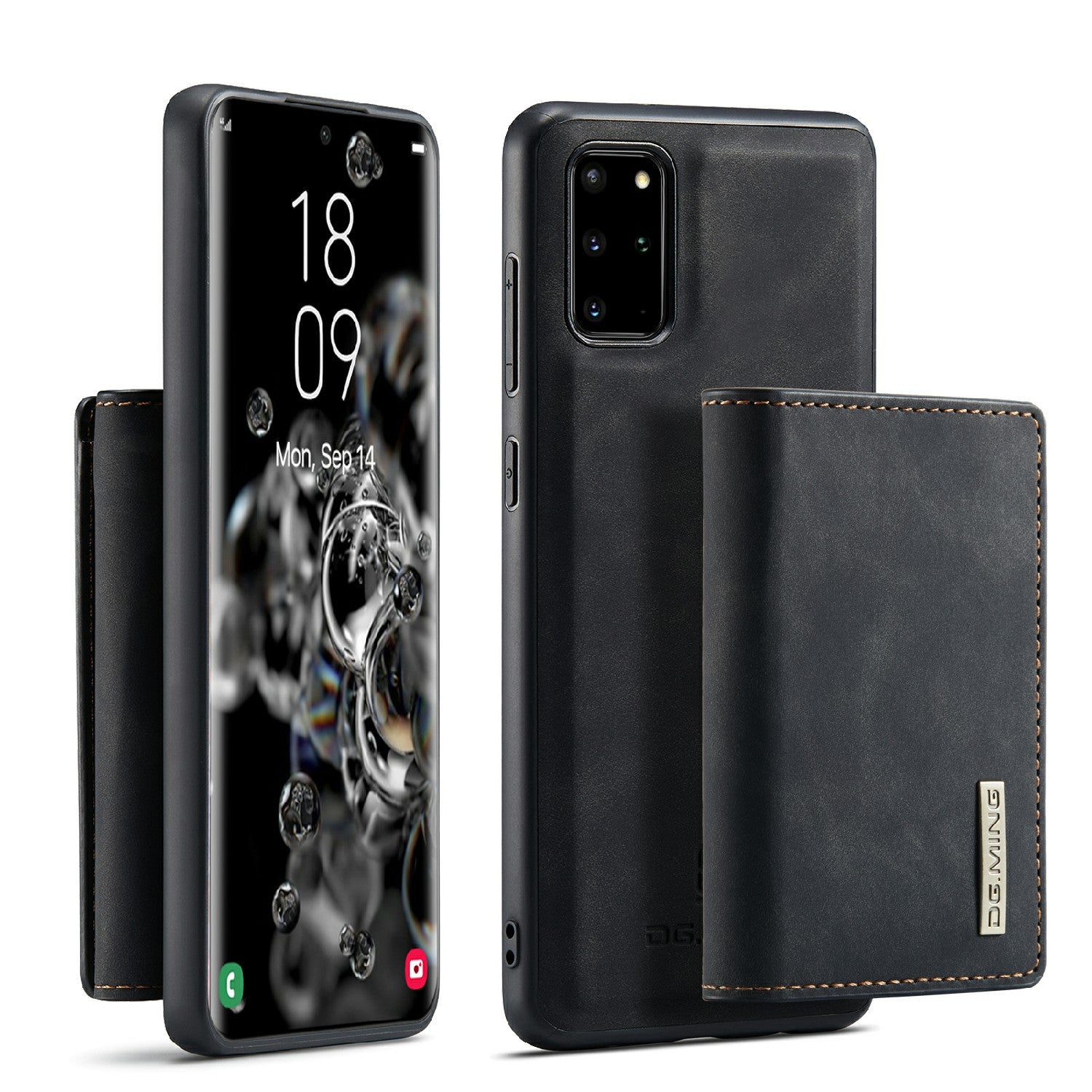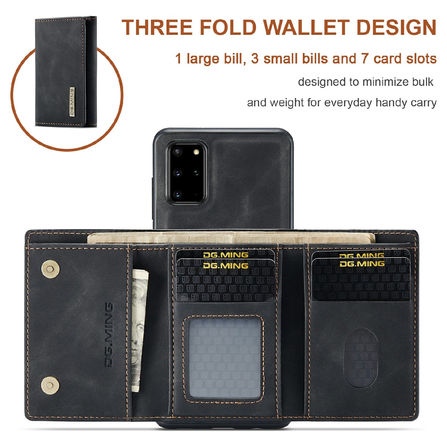DG.MING M1 Series Magnetic Wallet Design Leather Coated Hybrid Phone Shell with Kickstand for Samsung Galaxy S20 Plus - Black