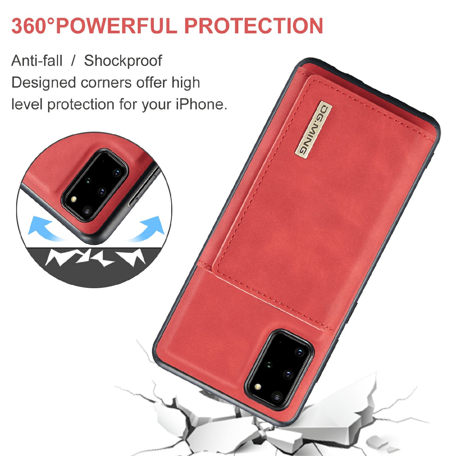 DG.MING M1 Series Magnetic Wallet Design Leather Coated Hybrid Phone Shell with Kickstand for Samsung Galaxy S20 Plus - Red