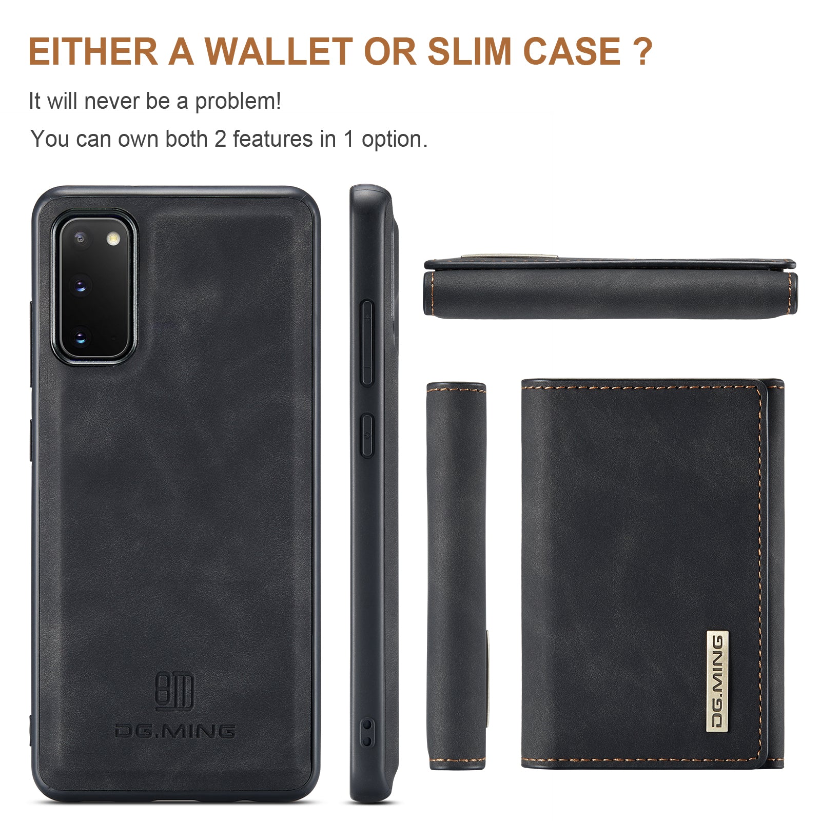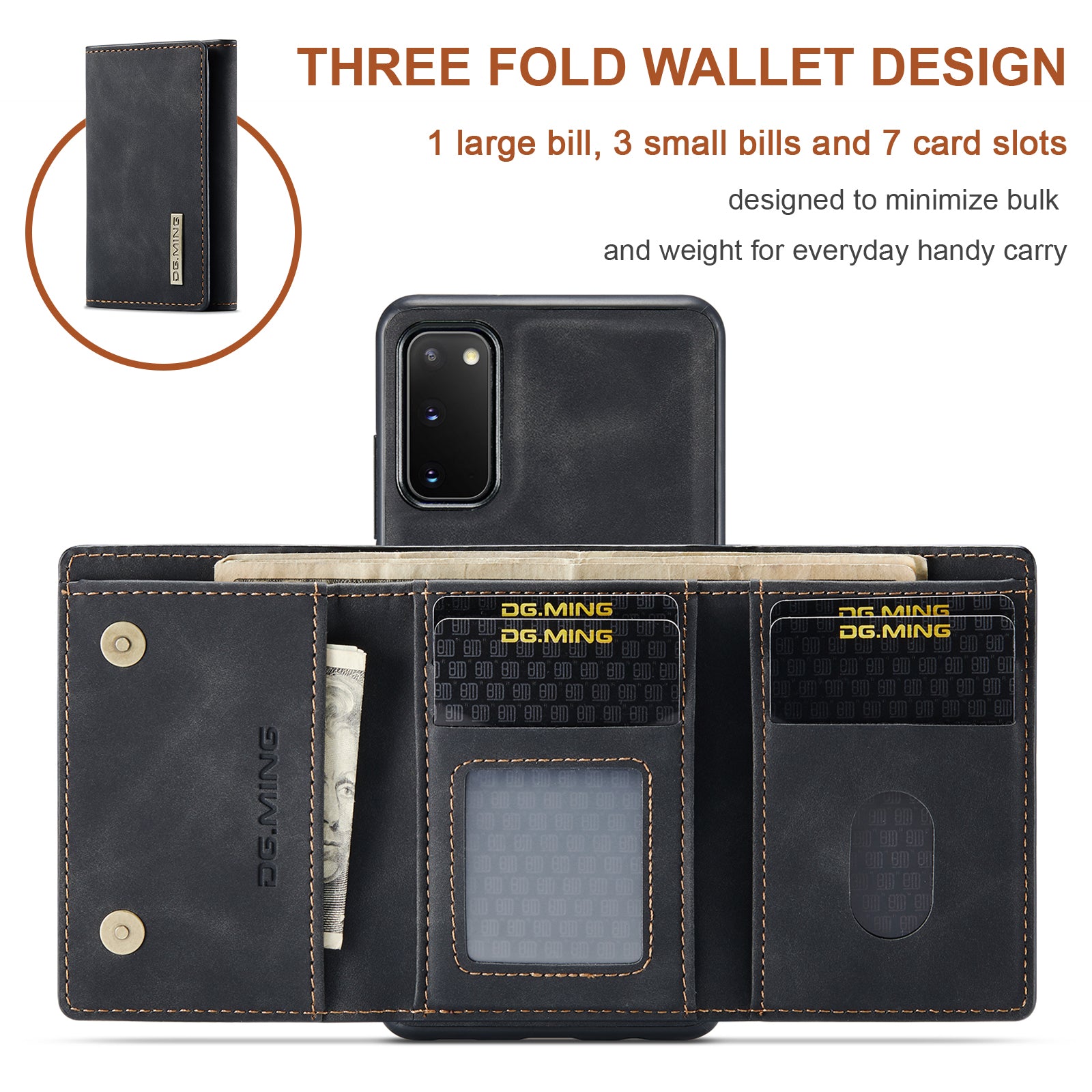 DG.MING M1 Series Powerful Magnet Wireless Charging Anti-Scratch Detachable Wallet 2-in-1 Hybrid Phone Shell with Kickstand for Samsung Galaxy S20 4G/S20 5G - Black