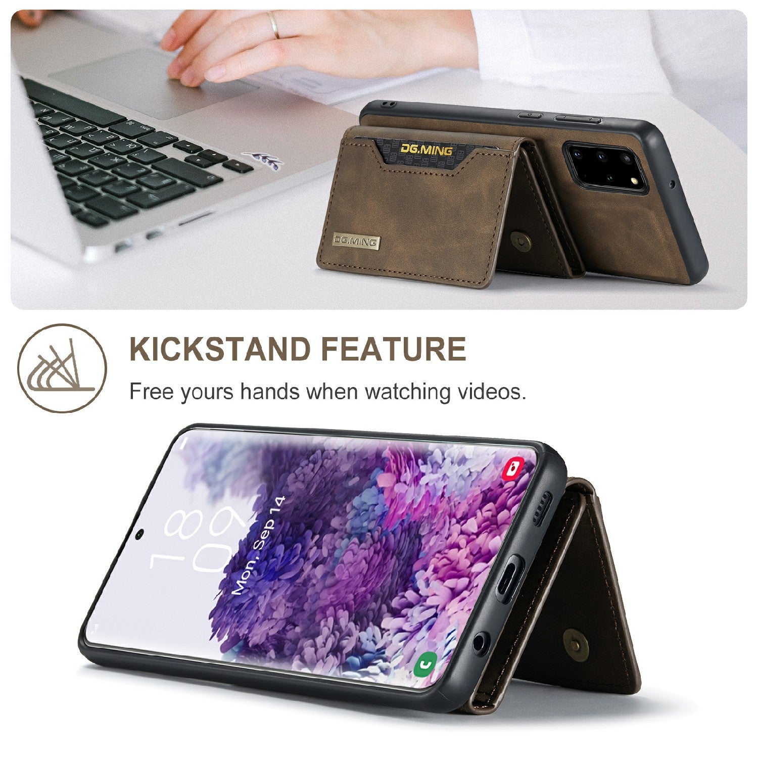 DG.MING M2 Series Anti-drop Magnetic Wallet Design with Kickstand  Leather Coated Hybrid Case for Samsung Galaxy S20 Plus - Coffee