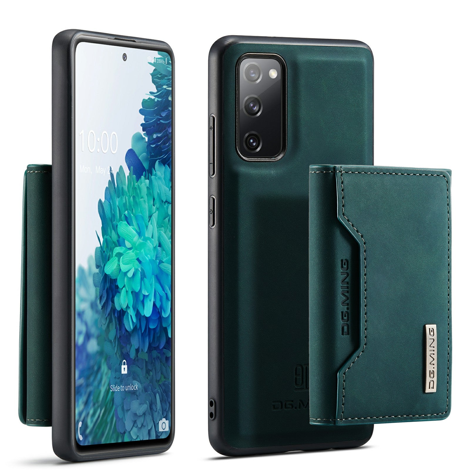 DG.MING M2 Series Magnetic Detachable Hybrid Case with Tri-Fold Wallet Kickstand Design for Samsung Galaxy S20 FE 2022/S20 FE 4G/S20 FE 5G/S20 Lite - Green