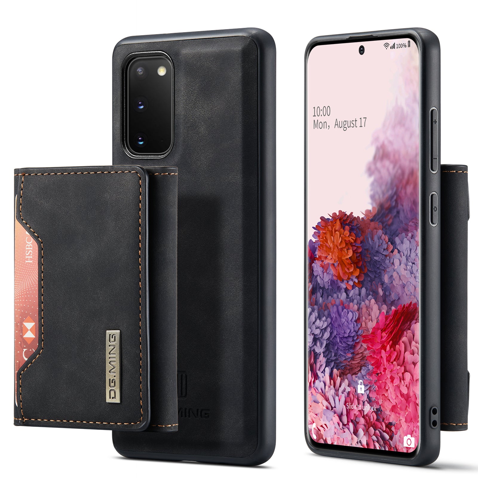 DG.MING M2 Series Wireless Charging Detachable Wallet 2-in-1 Shockproof Hybrid Phone Cover Shell with Horizontal-Viewing Kickstand for Samsung Galaxy S20 4G/S20 5G - Black