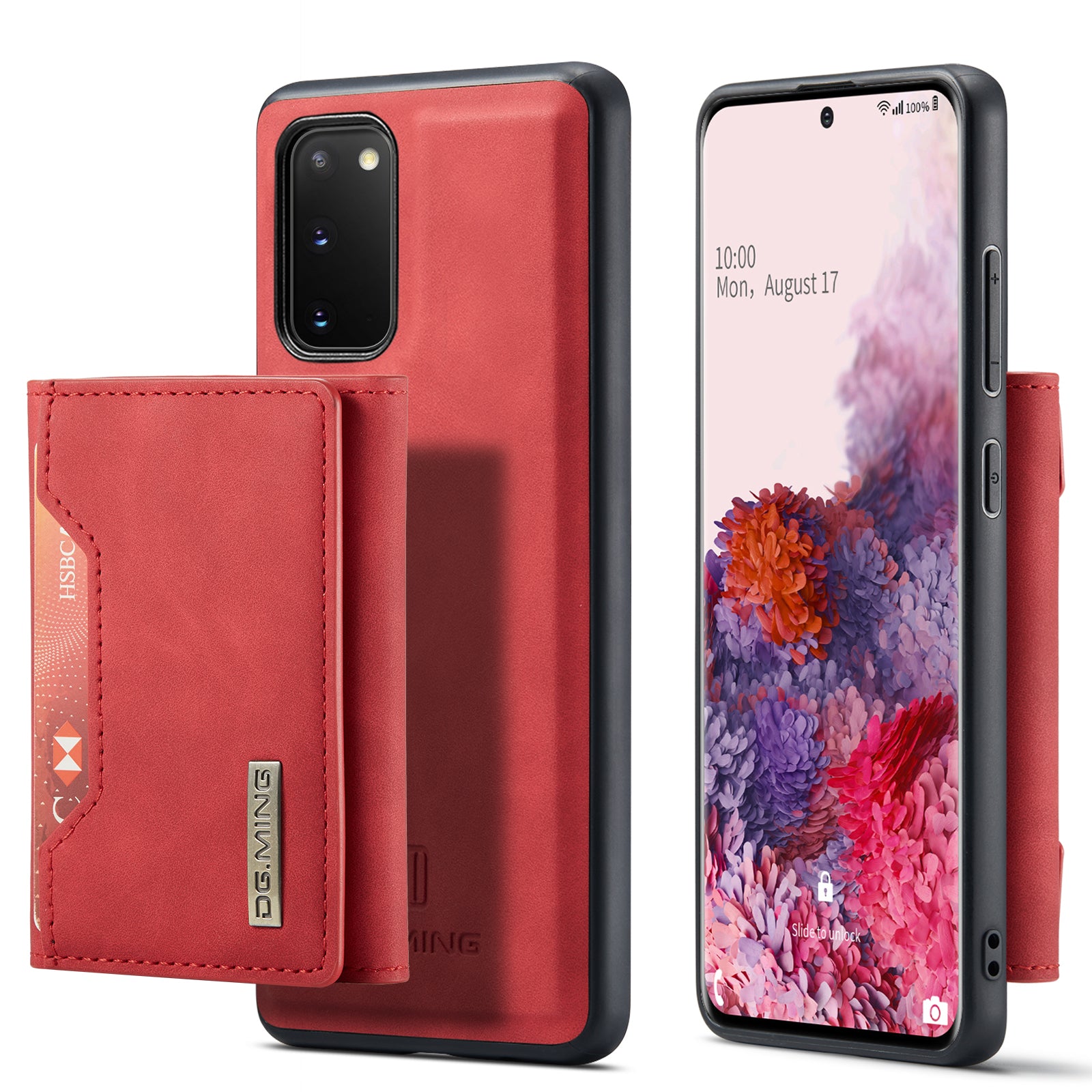 DG.MING M2 Series Wireless Charging Detachable Wallet 2-in-1 Shockproof Hybrid Phone Cover Shell with Horizontal-Viewing Kickstand for Samsung Galaxy S20 4G/S20 5G - Red