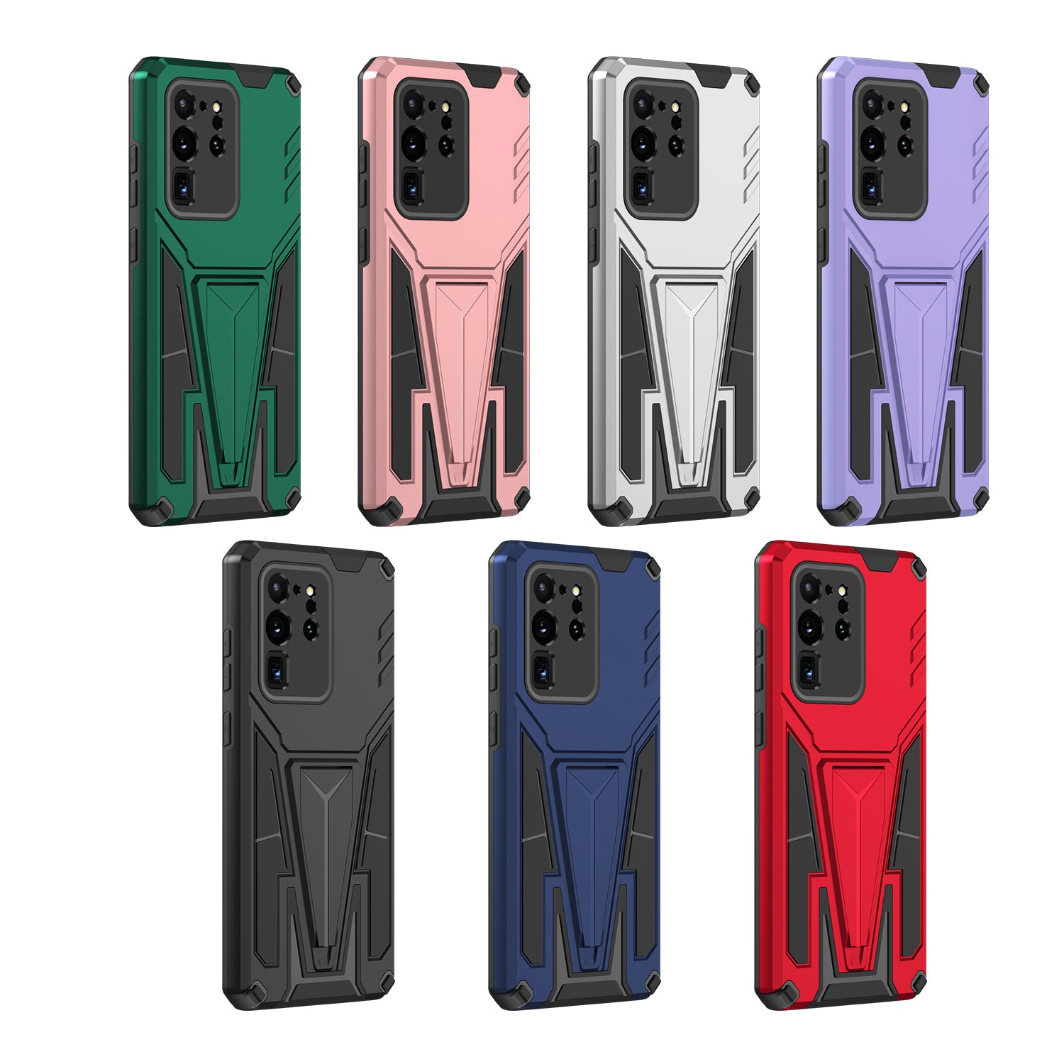 Dual-Layer Shock-Absorption V-Shaped Armor Hard PC + Flexible TPU Protective Case with Kickstand for Samsung Galaxy S20 Ultra - Rose Gold