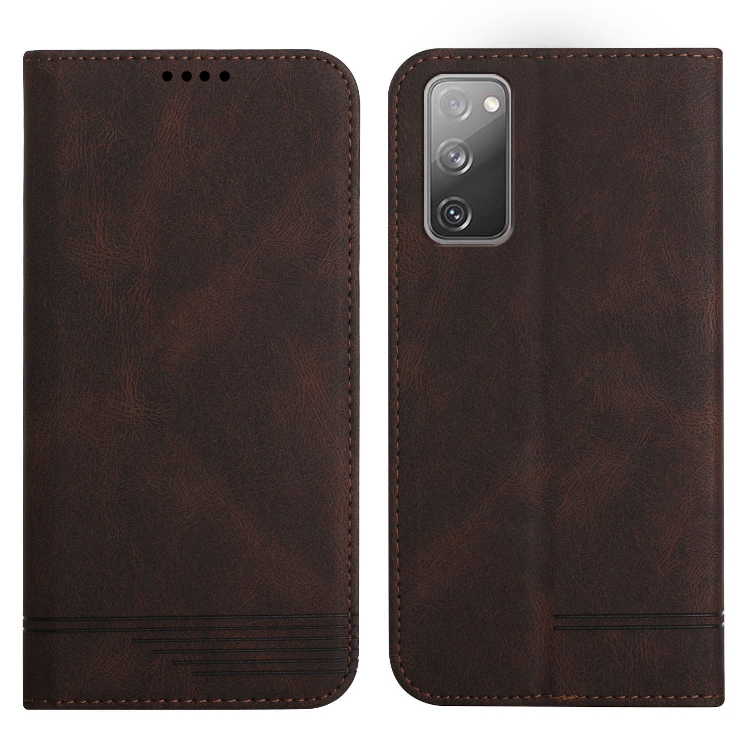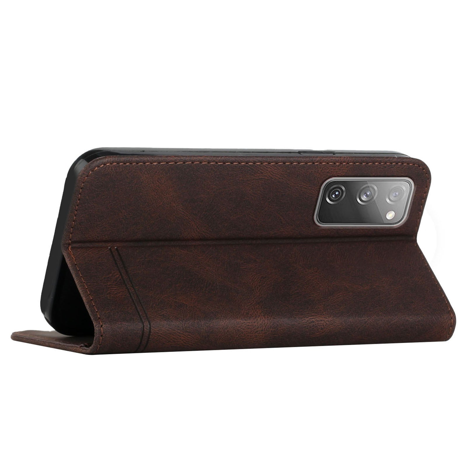 Foldable Stand Magnetic Auto Closure Leather Phone Case with Wallet for Samsung Galaxy S20 FE 2022/S20 FE/S20 FE 5G/S20 Lite - Brown