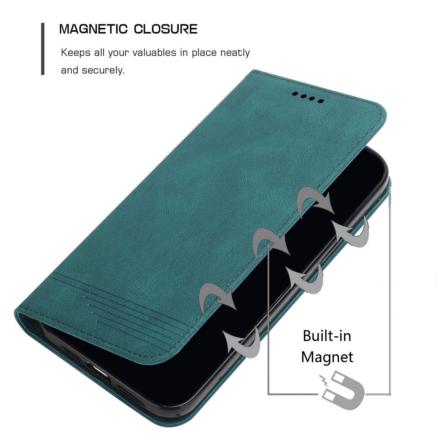 Foldable Stand Magnetic Auto Closure Leather Phone Case with Wallet for Samsung Galaxy S20 FE 2022/S20 FE/S20 FE 5G/S20 Lite - Green