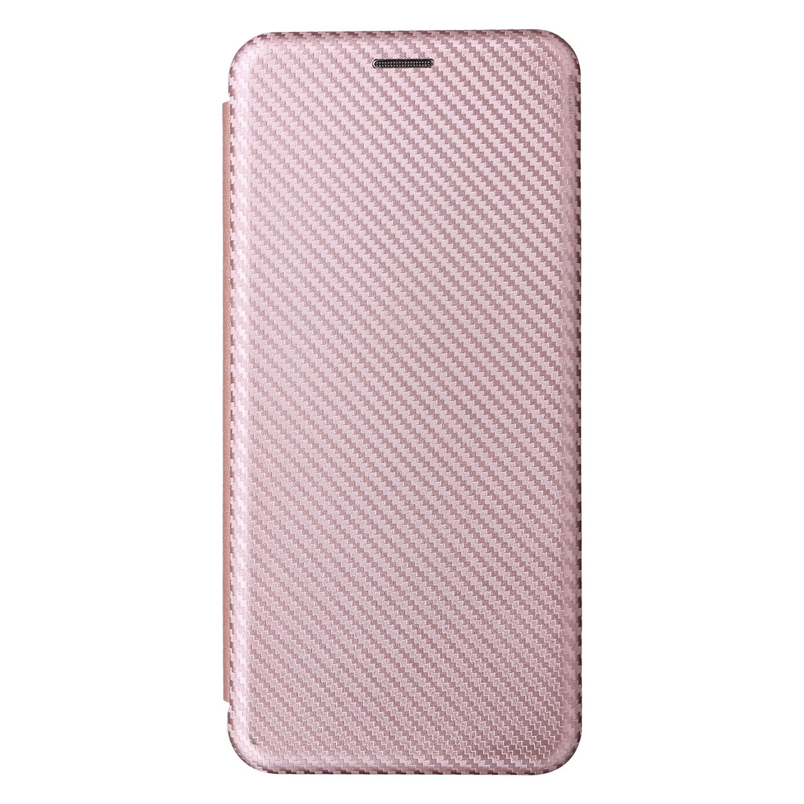 Uniqkart for HTC U23 Pro 5G Phone Stand Case Carbon Fiber Texture Leather Cover with Card Slot - Rose Gold
