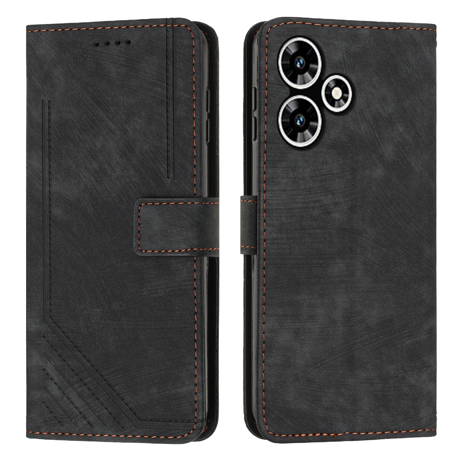Uniqkart for Infinix Hot 30 Play NFC 4G Stand Wallet Phone Case PU Leather Lines Imprinted Cover with Shoulder Strap - Black