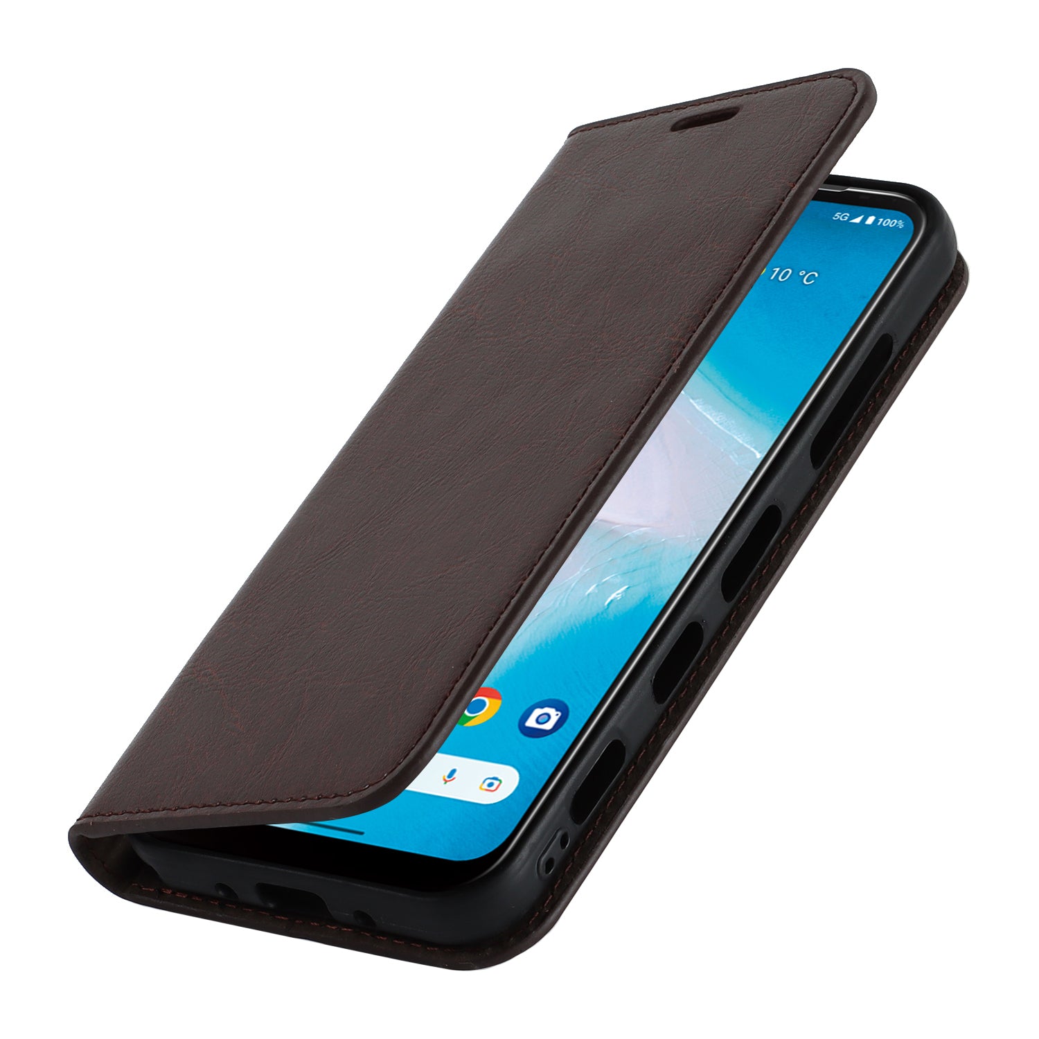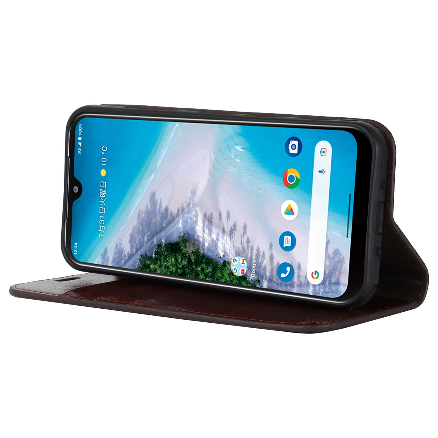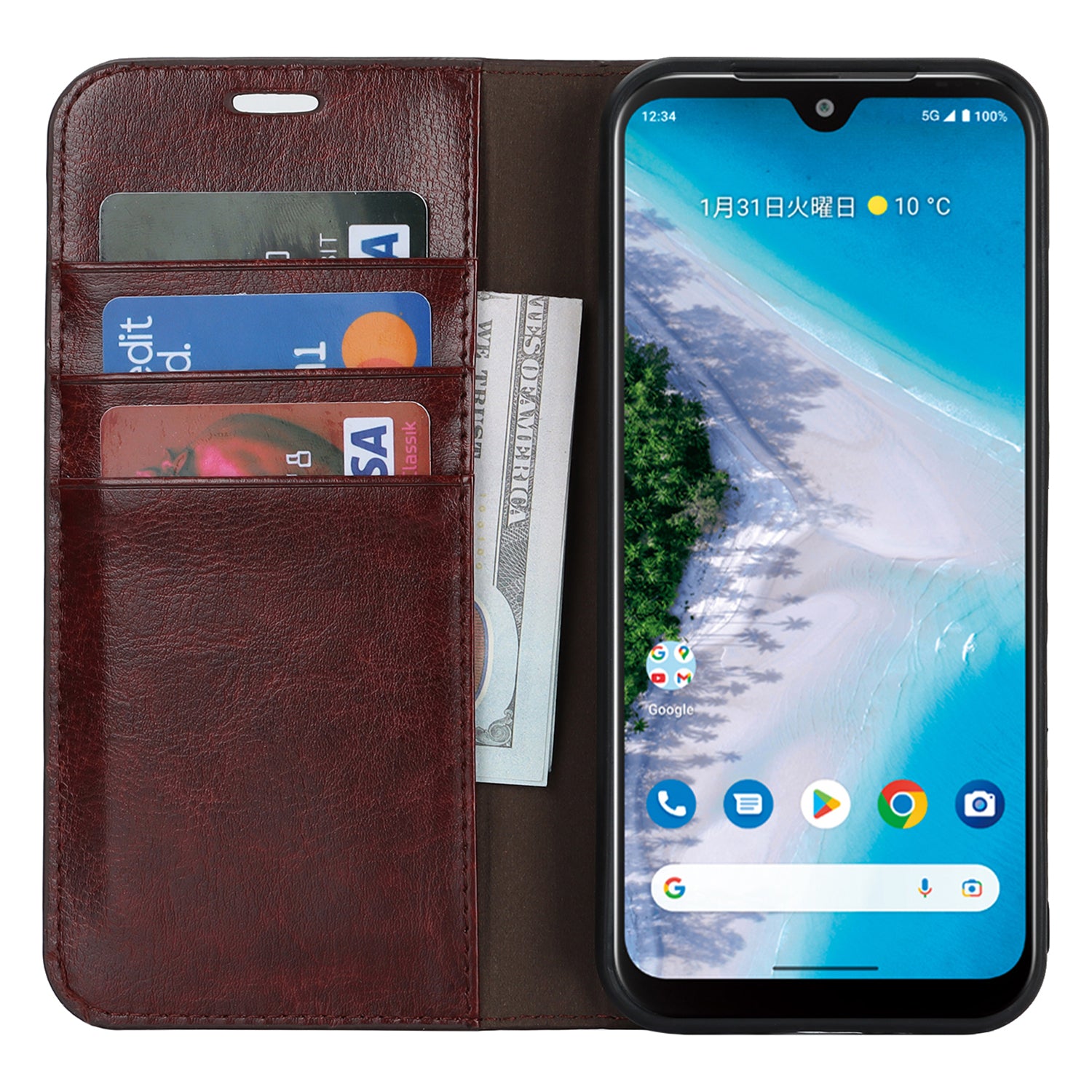 Uniqkart for Kyocera Android One S10 / One S9 Fall Proof Phone Case Crazy Horse Texture Genuine Cow Leather Stand Wallet Cover - Dark Brown