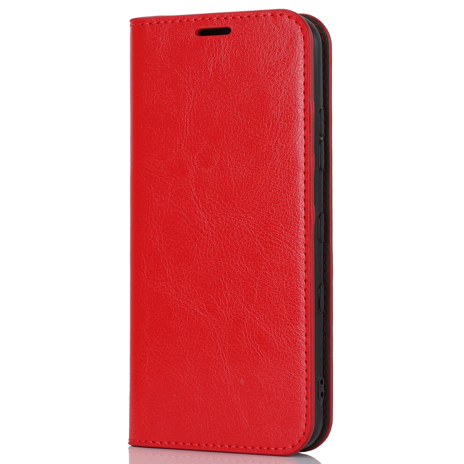 Uniqkart for Kyocera Digno SX3 KYG02 Phone Case Crazy Horse Texture Genuine Cow Leather Stand Wallet Anti-drop Cover - Red