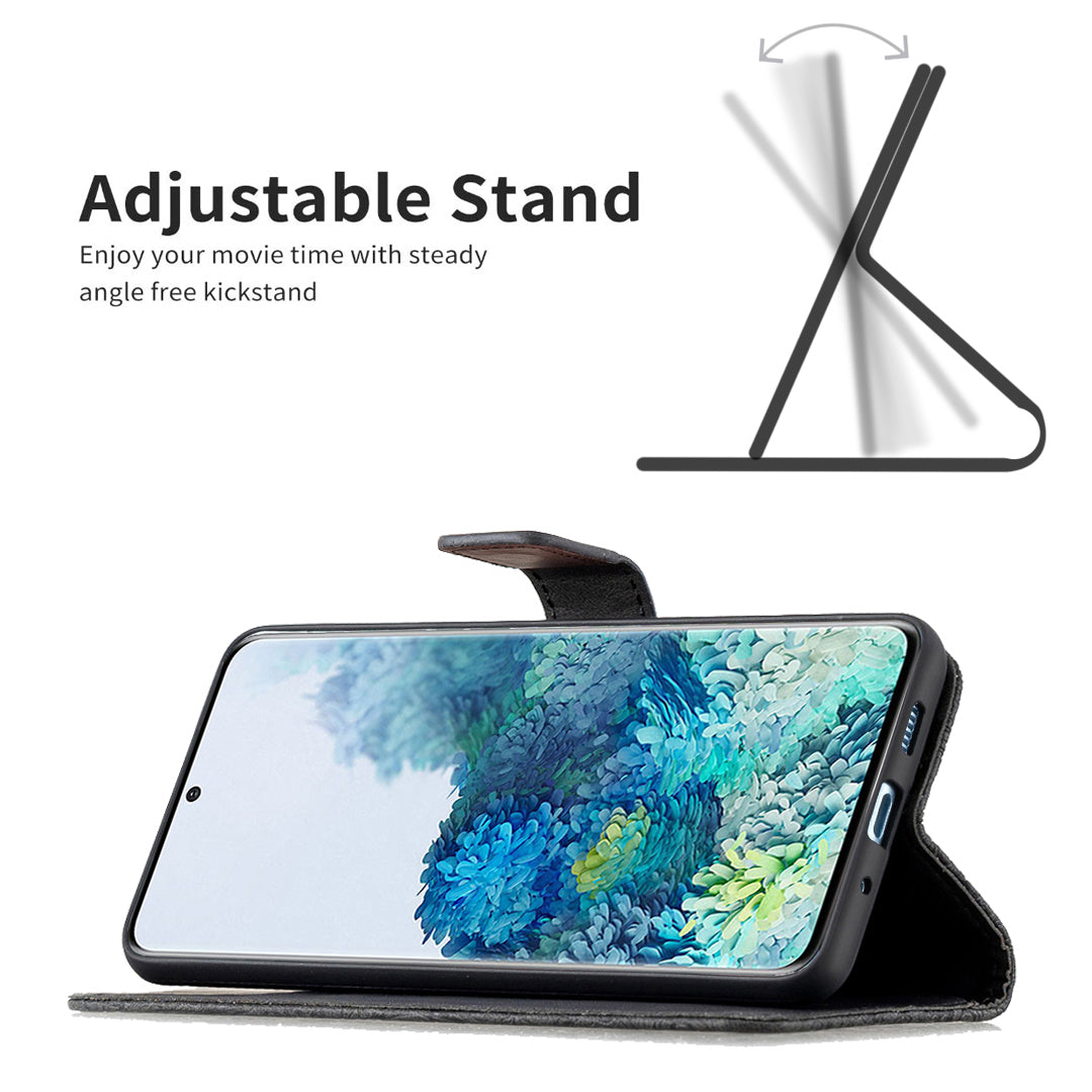 For Samsung Galaxy S20 Plus 4G / 5G Phone Case PU Leather Imprinted Butterfly Pattern Wallet Stand Phone Cover - Black