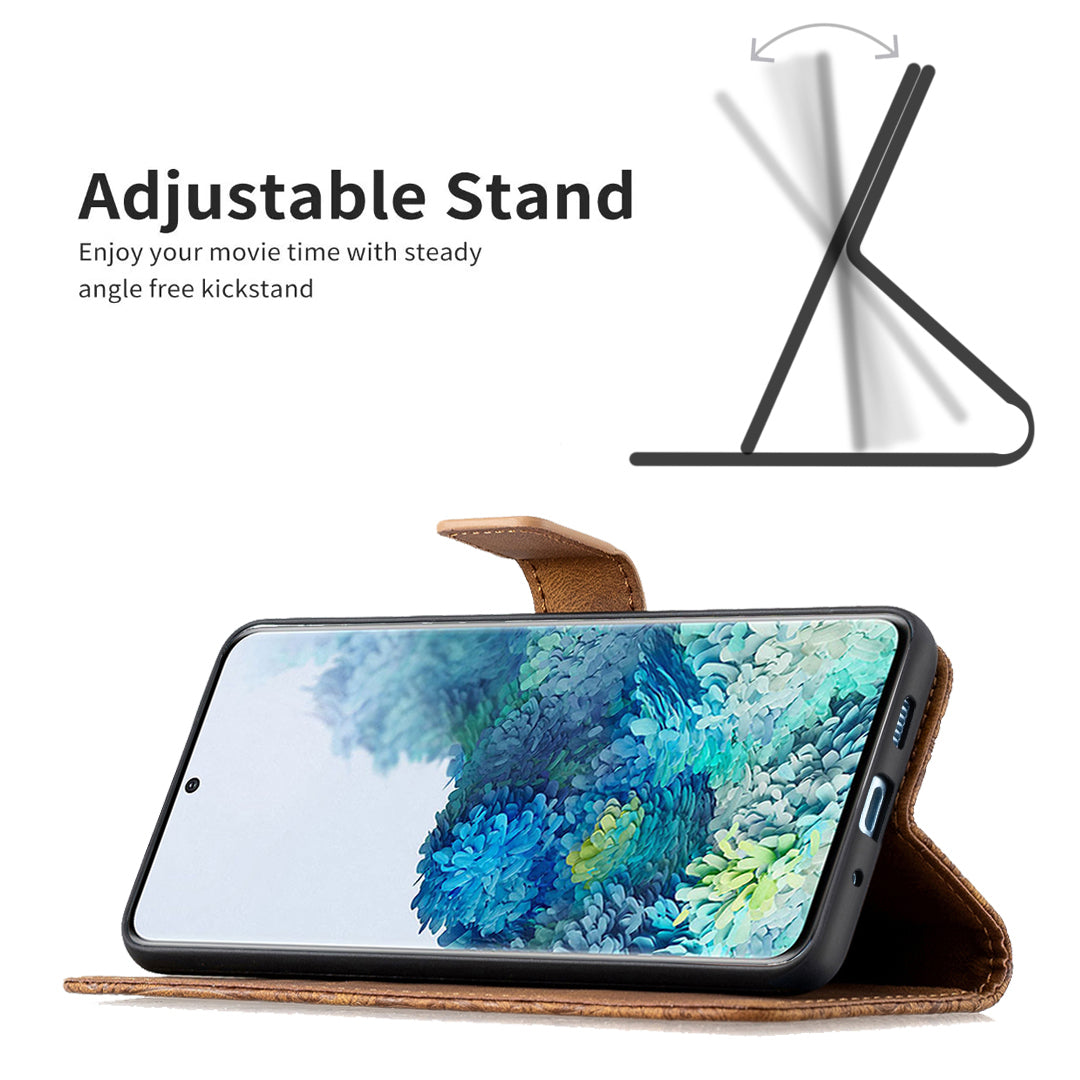 For Samsung Galaxy S20 Plus 4G / 5G Phone Case PU Leather Imprinted Butterfly Pattern Wallet Stand Phone Cover - Brown