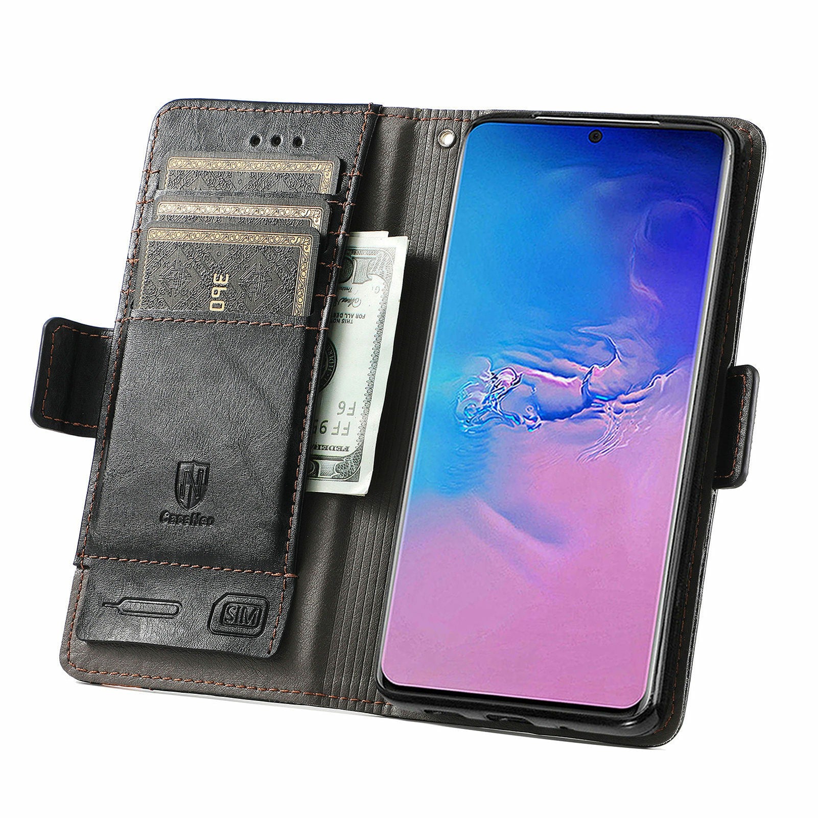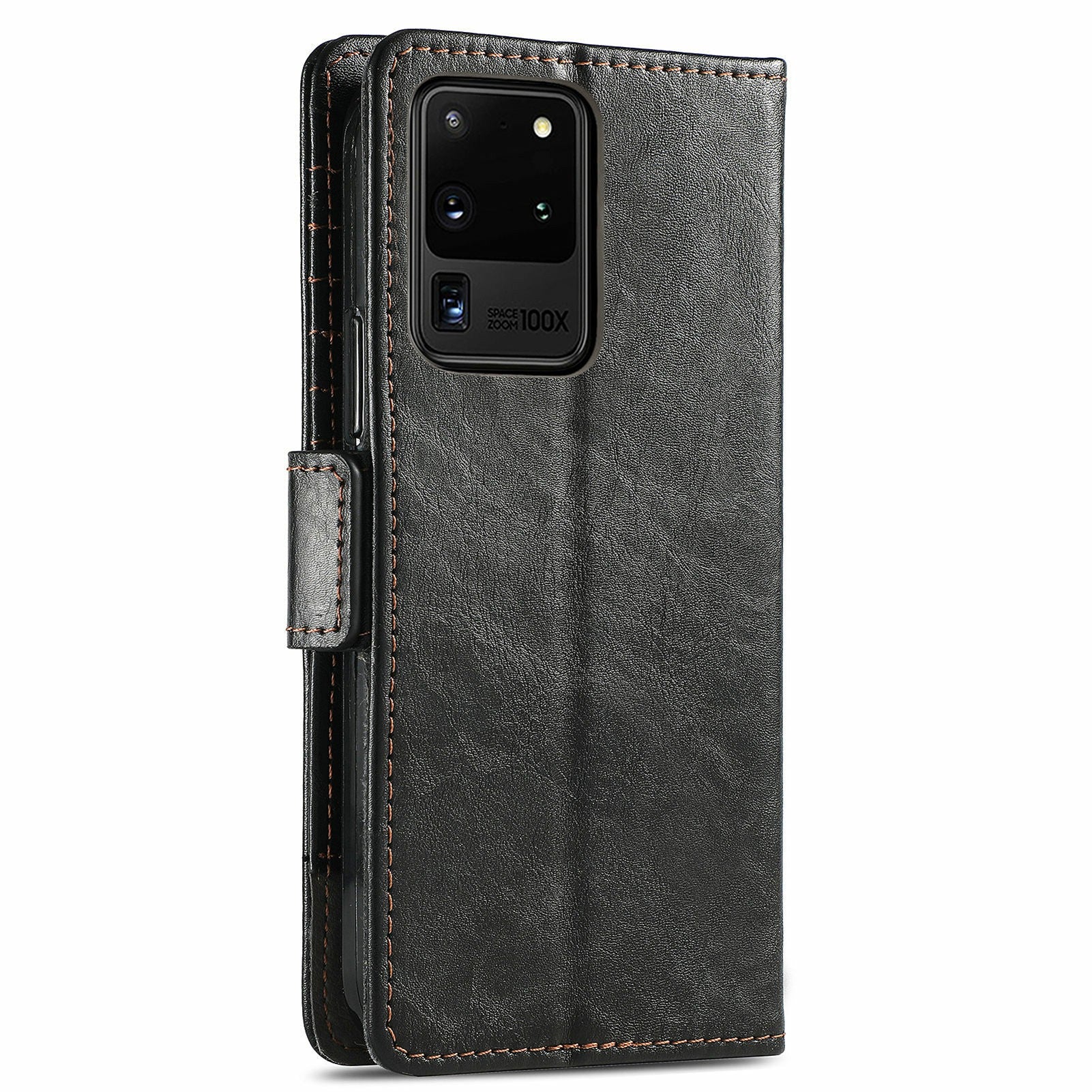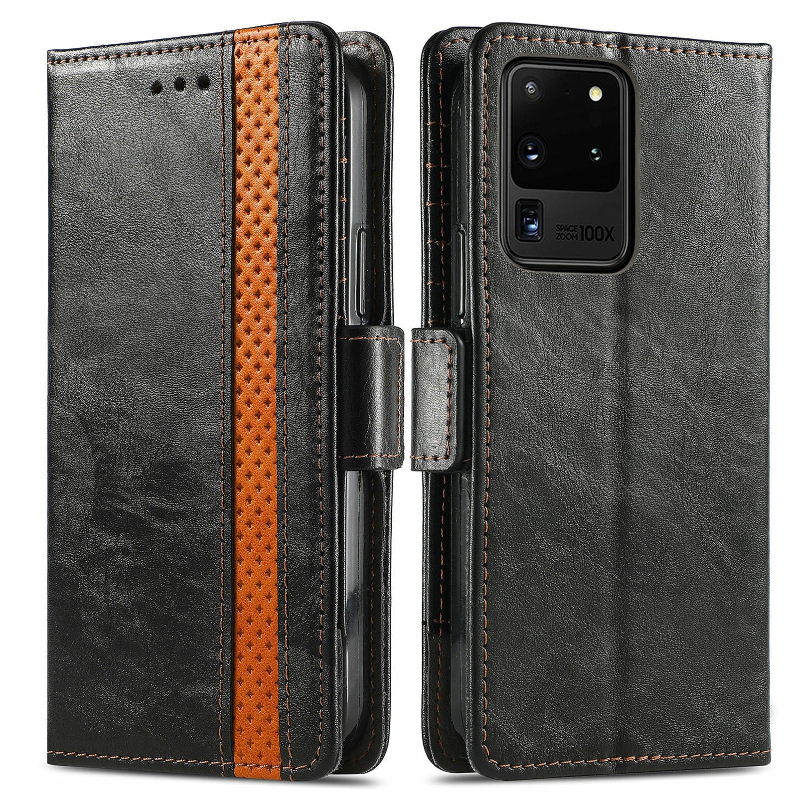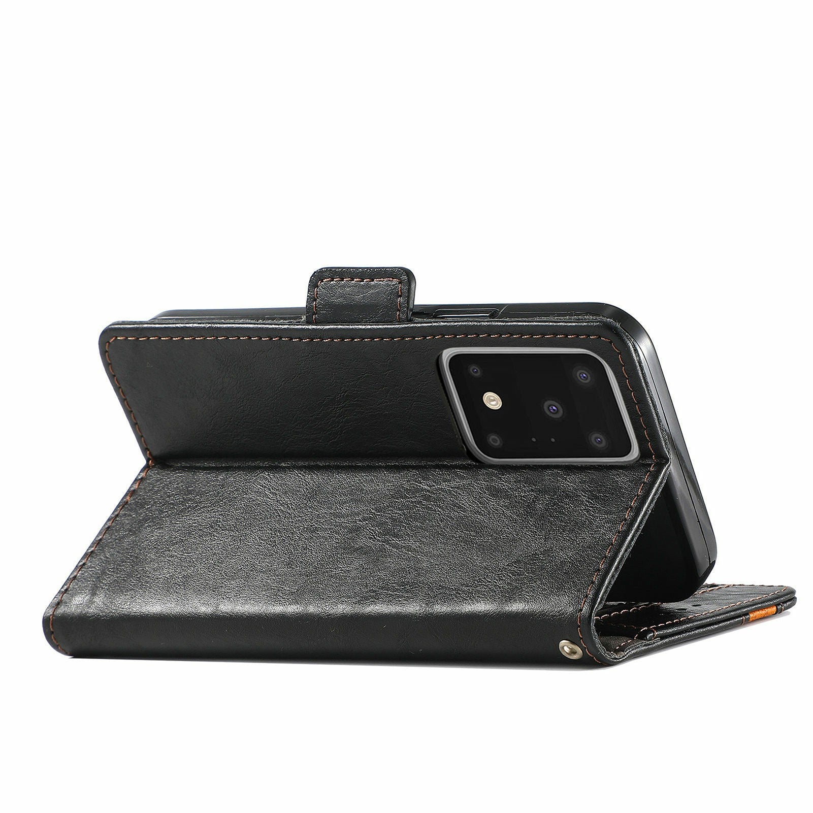 For Samsung Galaxy S20 Ultra CASENEO 002 Series Business Style Splicing Leather Case Stand Wallet Cover - Black