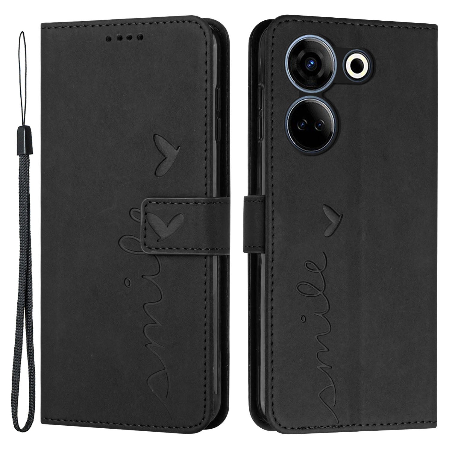 Uniqkart for Tecno Camon 20 4G / 20 Pro 4G Leather Phone Case Stand Skin-touch Imprinted Heart Wallet Cover - Black