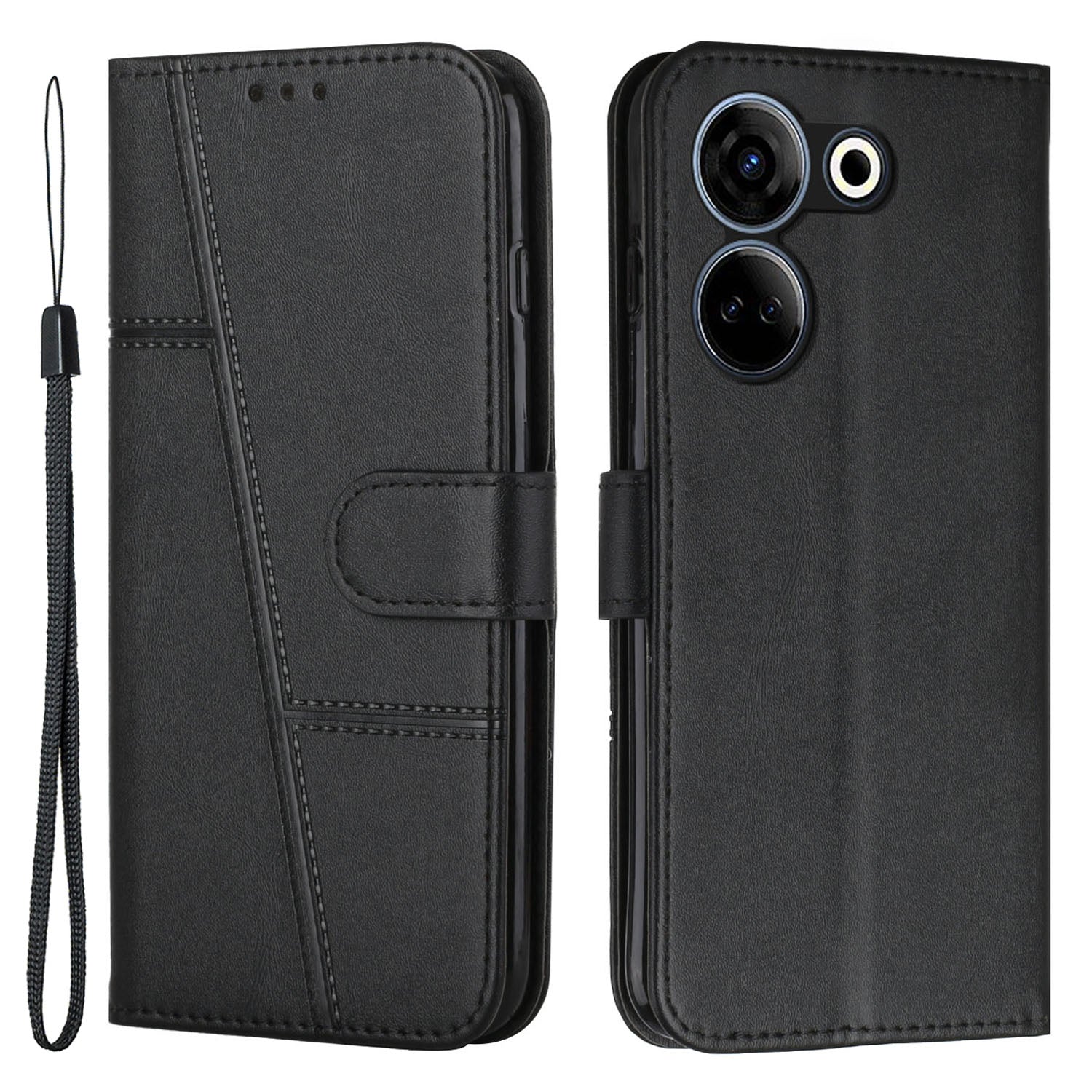 Uniqkart for Tecno Camon 20 4G / 20 Pro 4G PU Leather Wallet Case Stand Cell Phone Anti-fall Cover - Black
