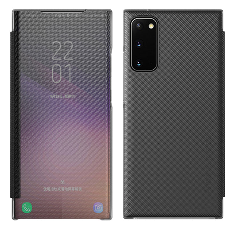 Full Protection Anti-drop Mirror Surface Stand Foldable Design Phone Case for Samsung Galaxy S20 Plus - Black