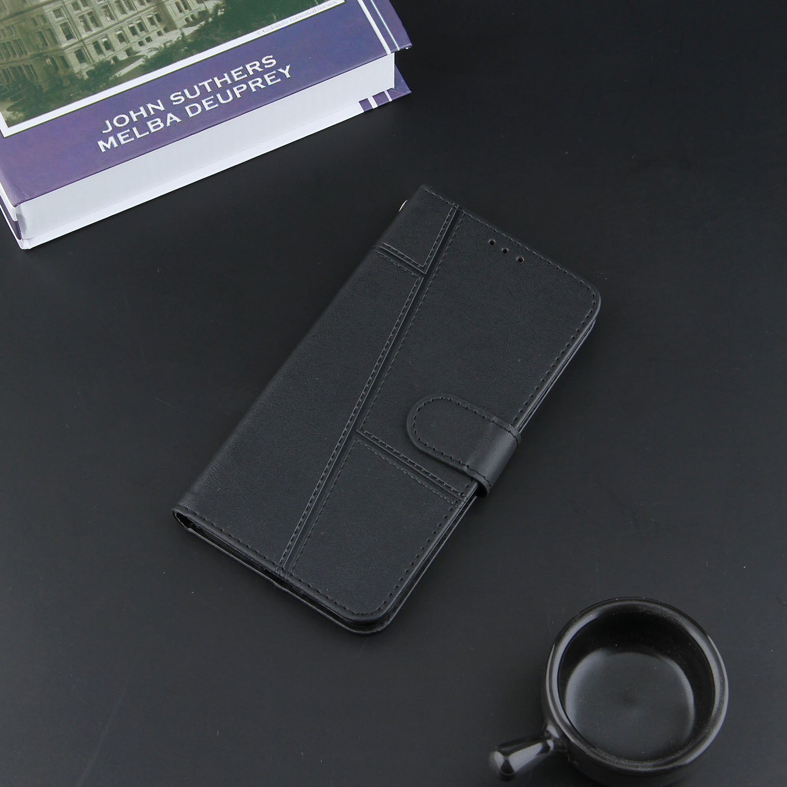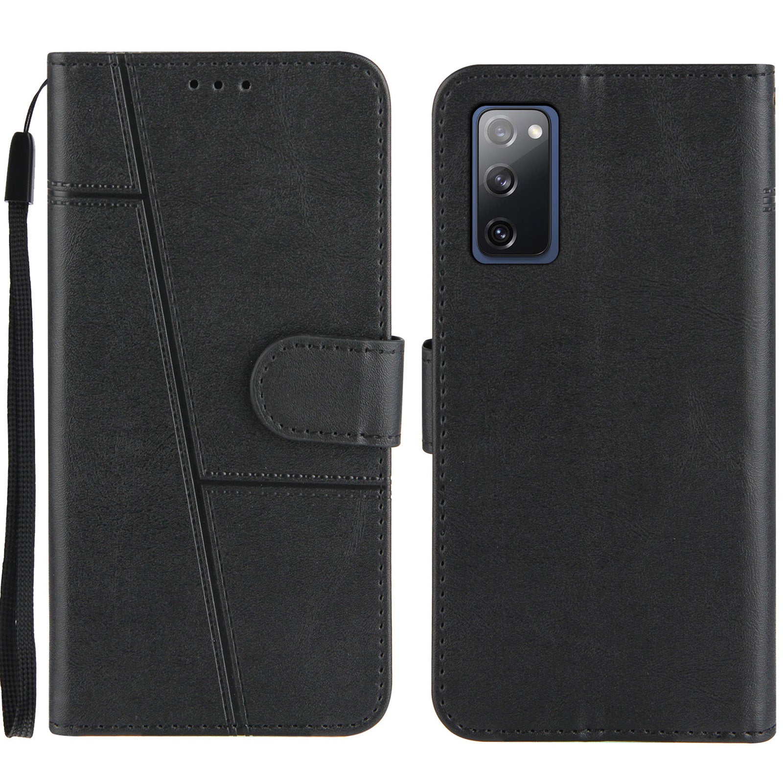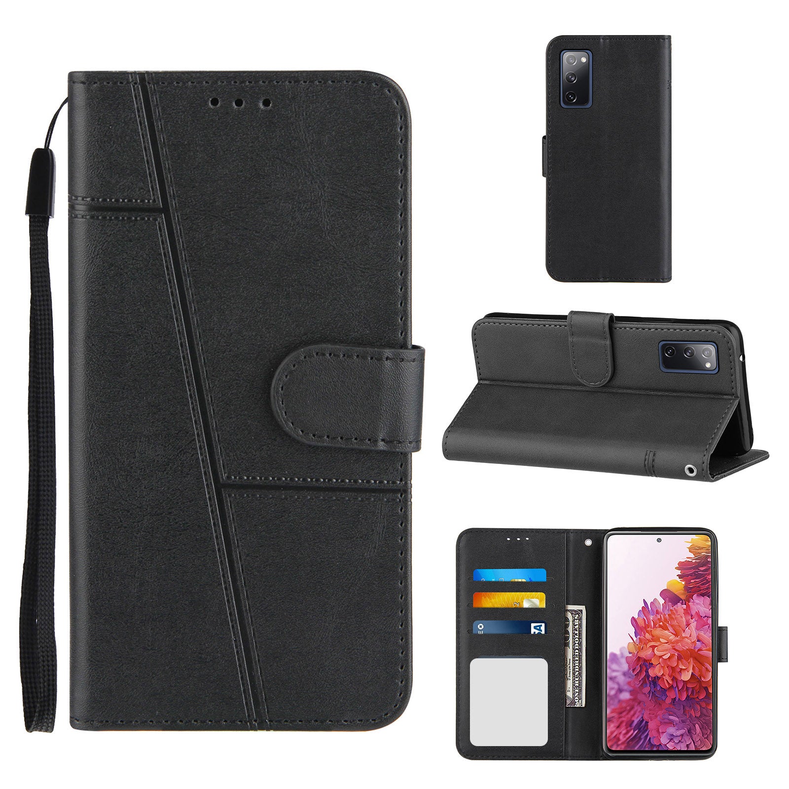 Full Protection Wallet Stand Design Concise Splicing Leather Phone Cover Case with Strap for Samsung Galaxy S20 FE 2022/S20 FE 4G/S20 FE 5G/S20 Lite - Black