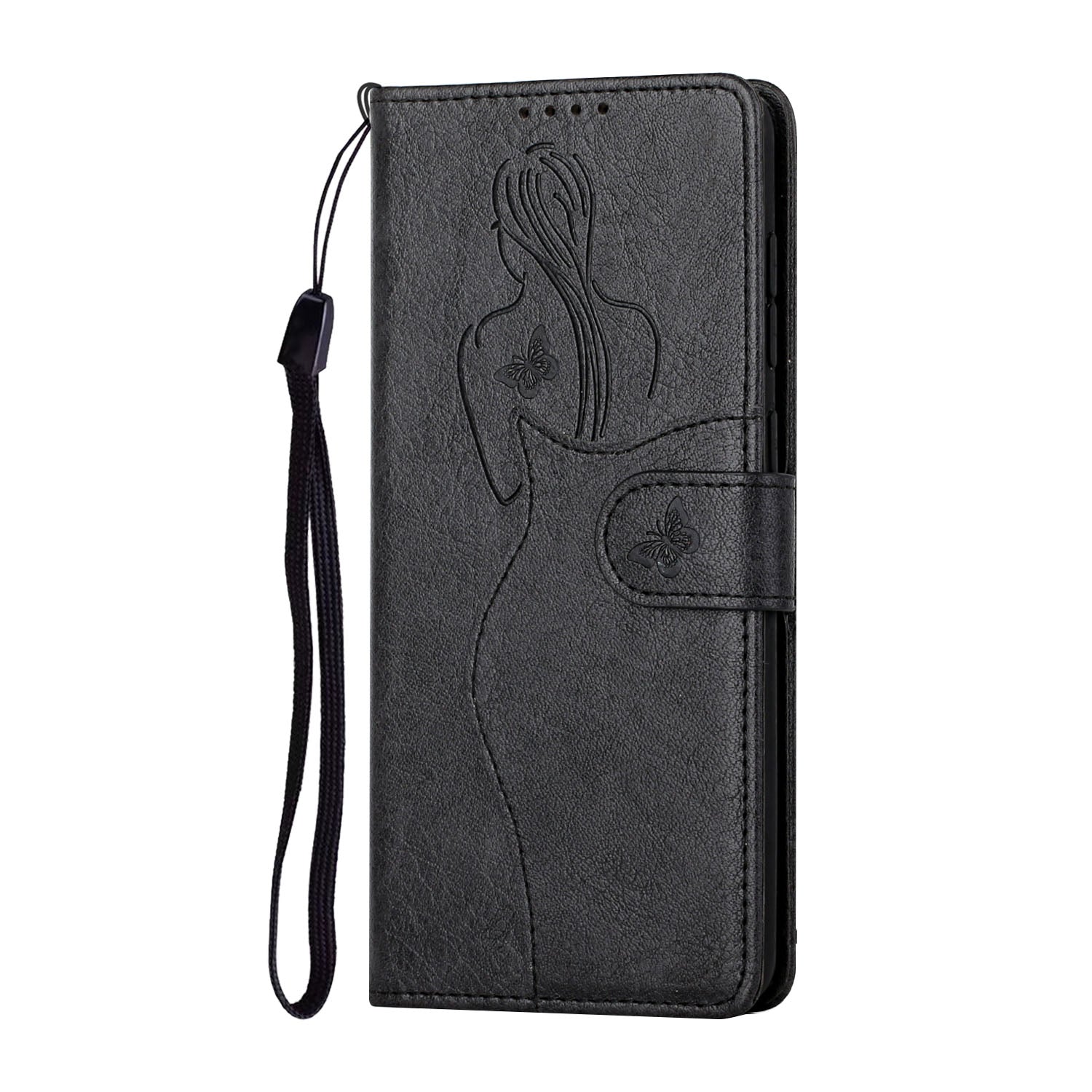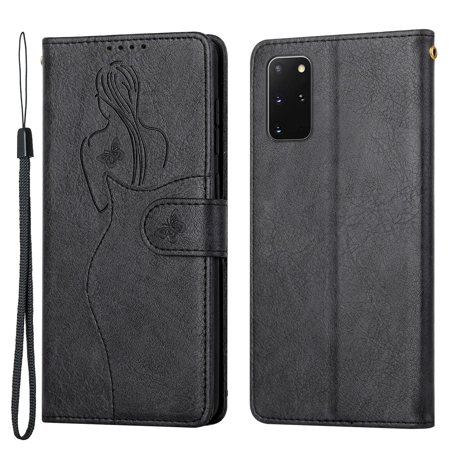 Girl Pattern Imprinted Wallet Stand Leather Case Shell with Strap for Samsung Galaxy S20 Plus 4G/5G - Black