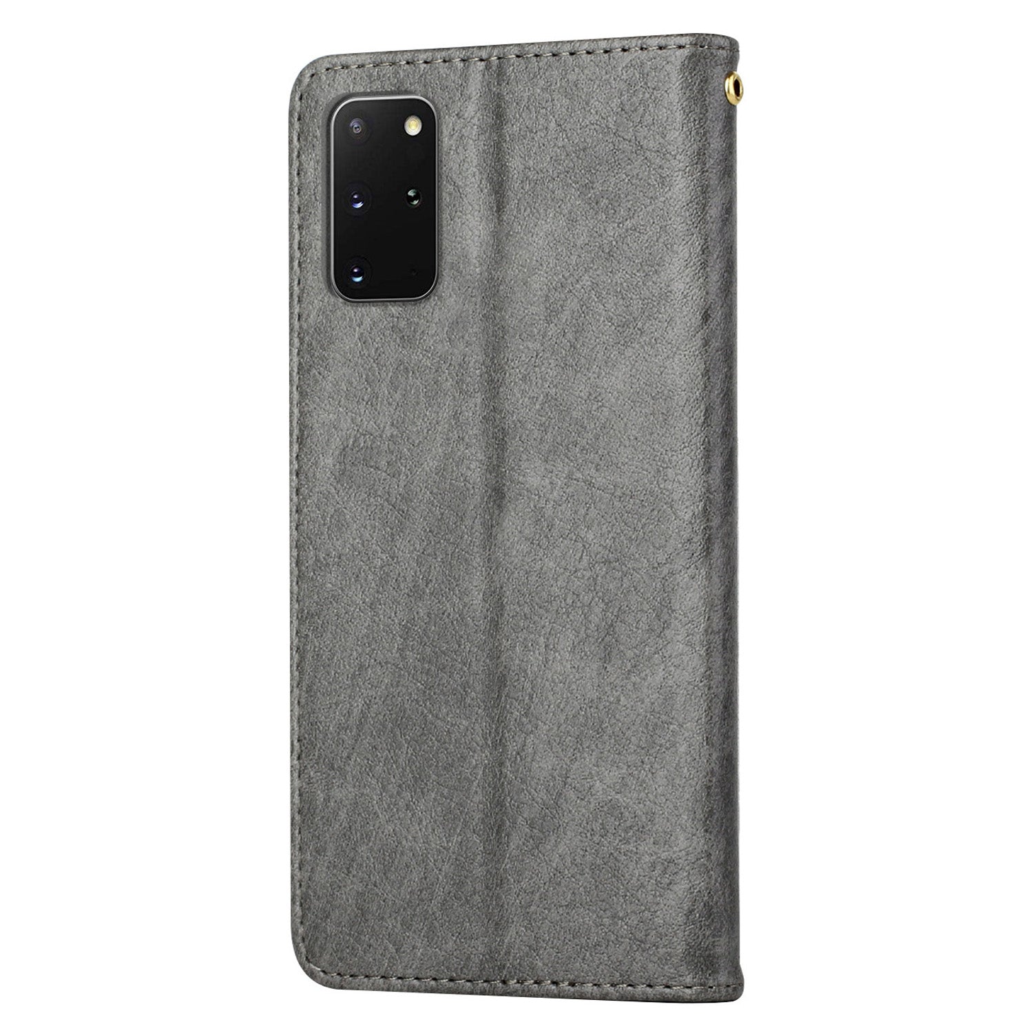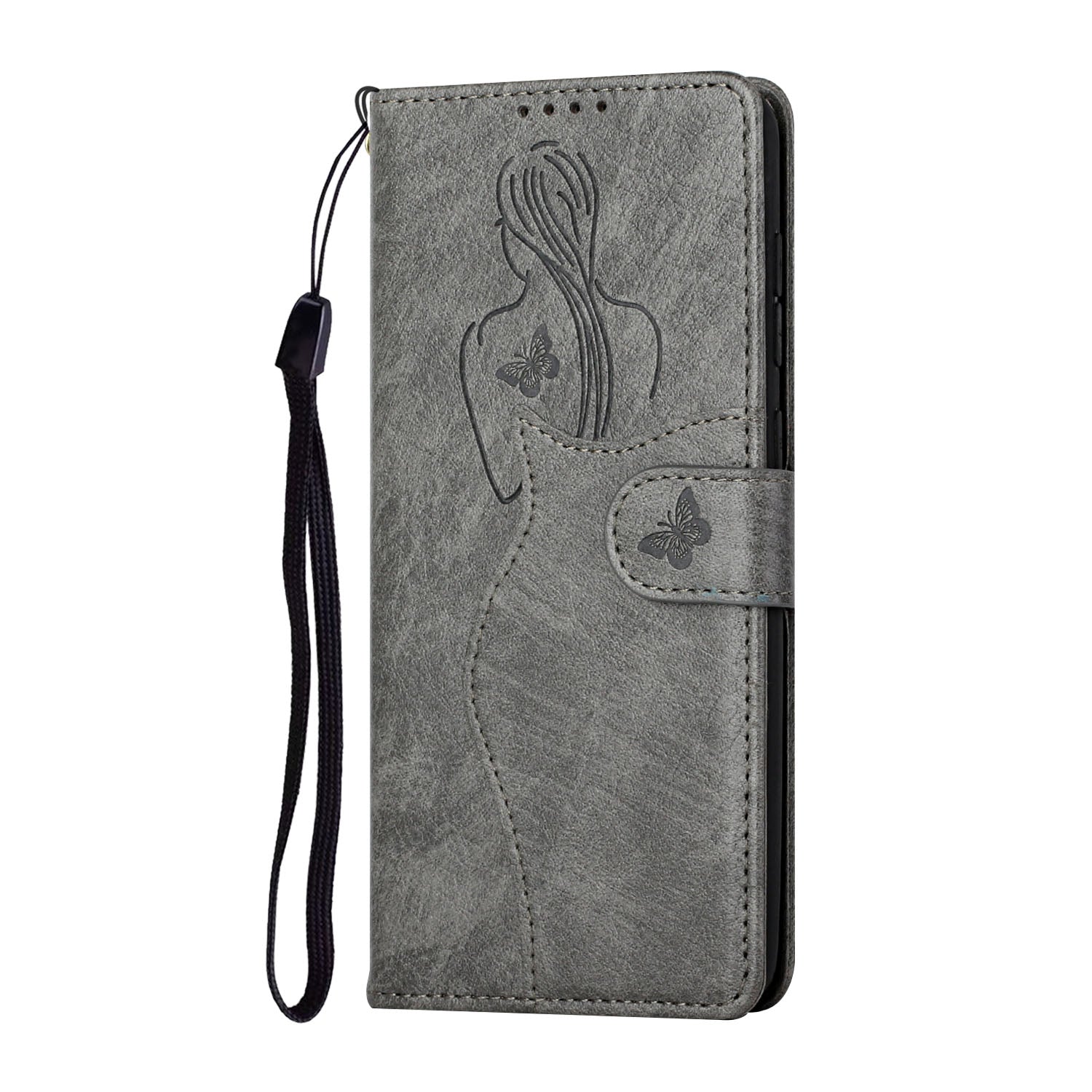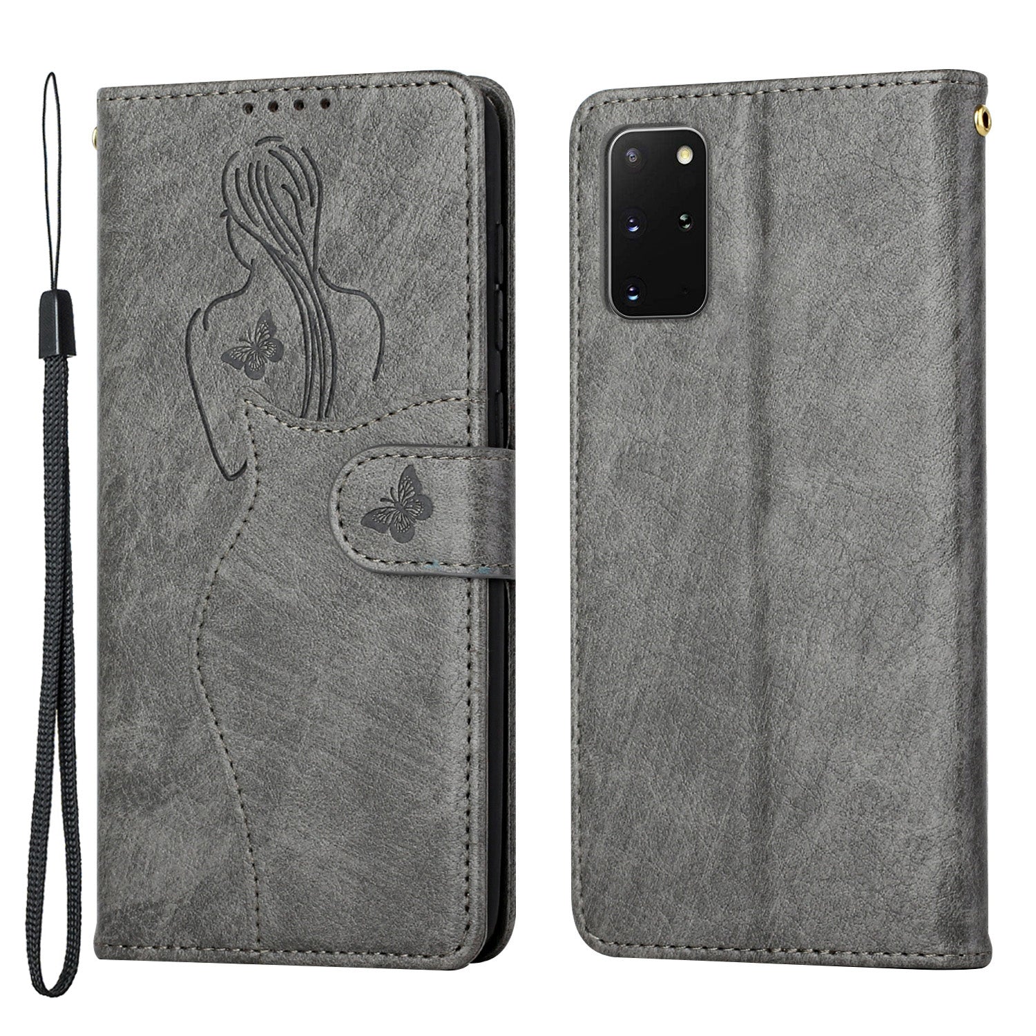 Girl Pattern Imprinted Wallet Stand Leather Case Shell with Strap for Samsung Galaxy S20 Plus 4G/5G - Grey