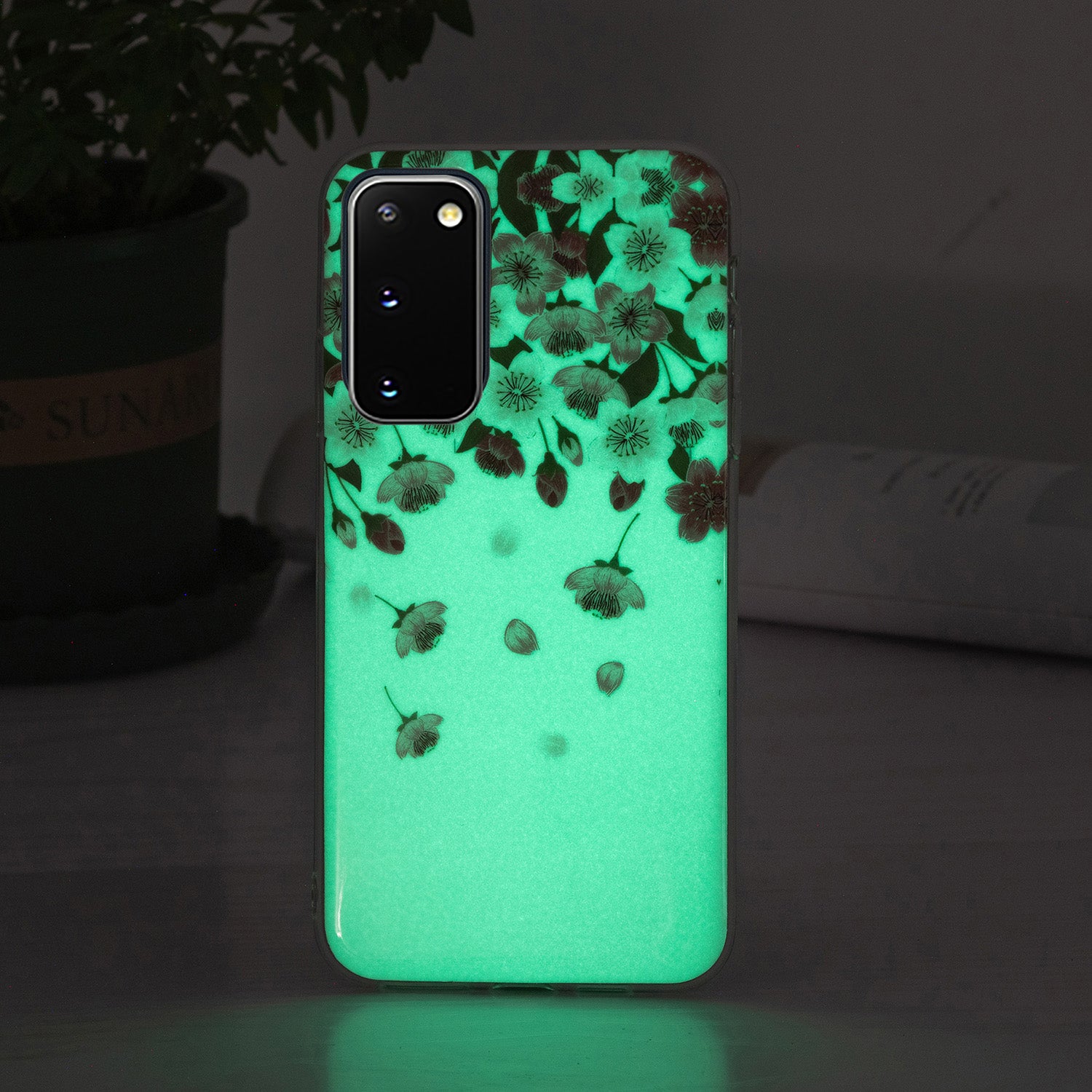 Glow in The Dark Noctilucent Shockproof Lightweight Soft TPU Cover Cell Phone Case for Samsung Galaxy S20 4G/S20 5G - Sakura