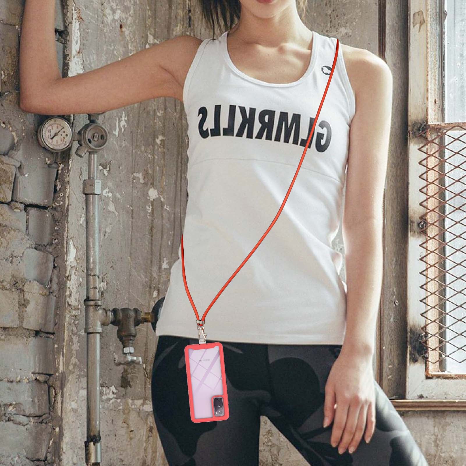 Heavy Duty Rugged Shockproof Hybrid Hard PC Soft TPU Protective Cover with Lanyard for Samsung Galaxy S20 FE 2022/S20 FE 4G/S20 FE 5G/S20 Lite - Red