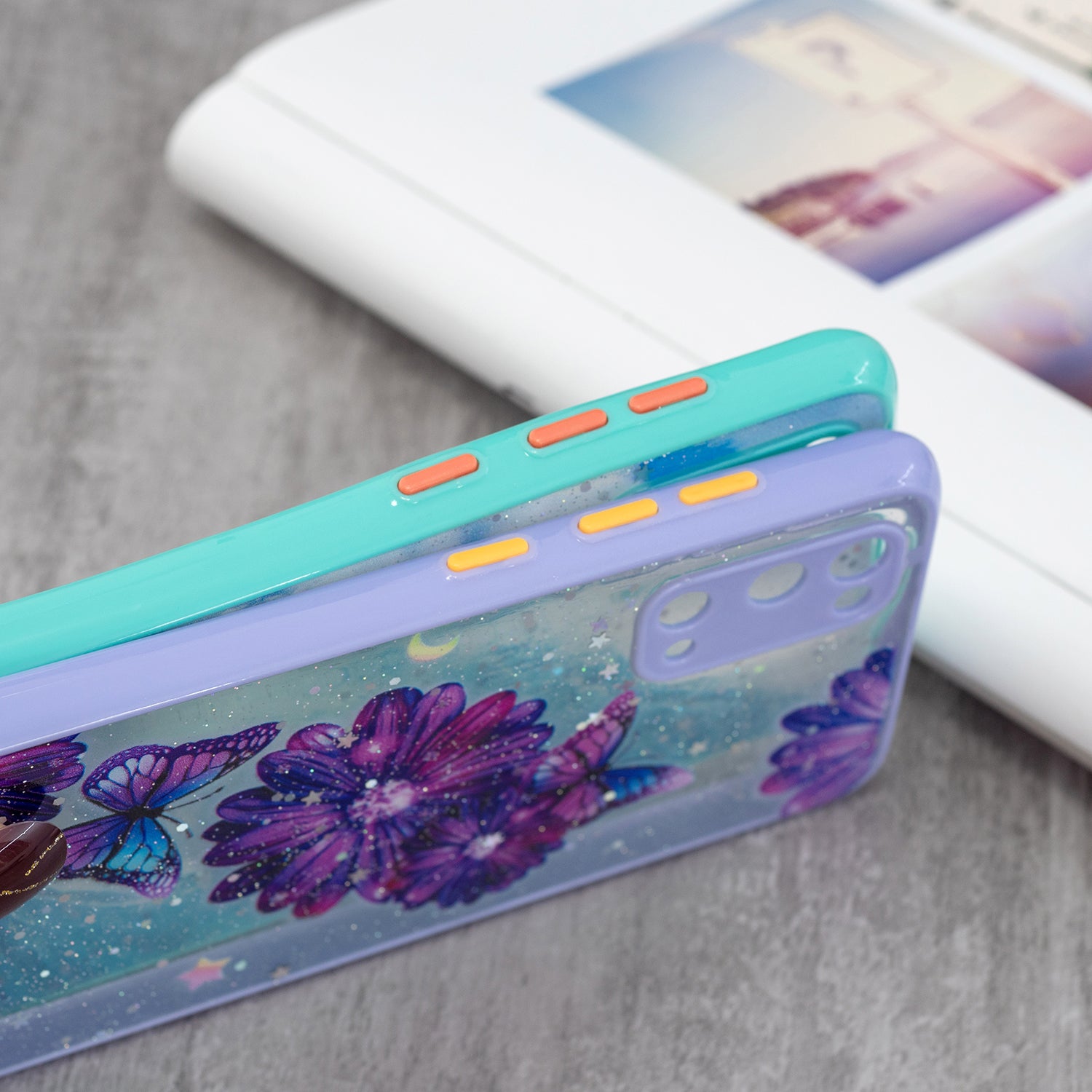 High Impact Pattern Printing Precise Cutout Dual Layer Hard Acrylic Back + Soft TPU Case for Samsung Galaxy S20 4G/S20 5G - Purple Flower Butterfly