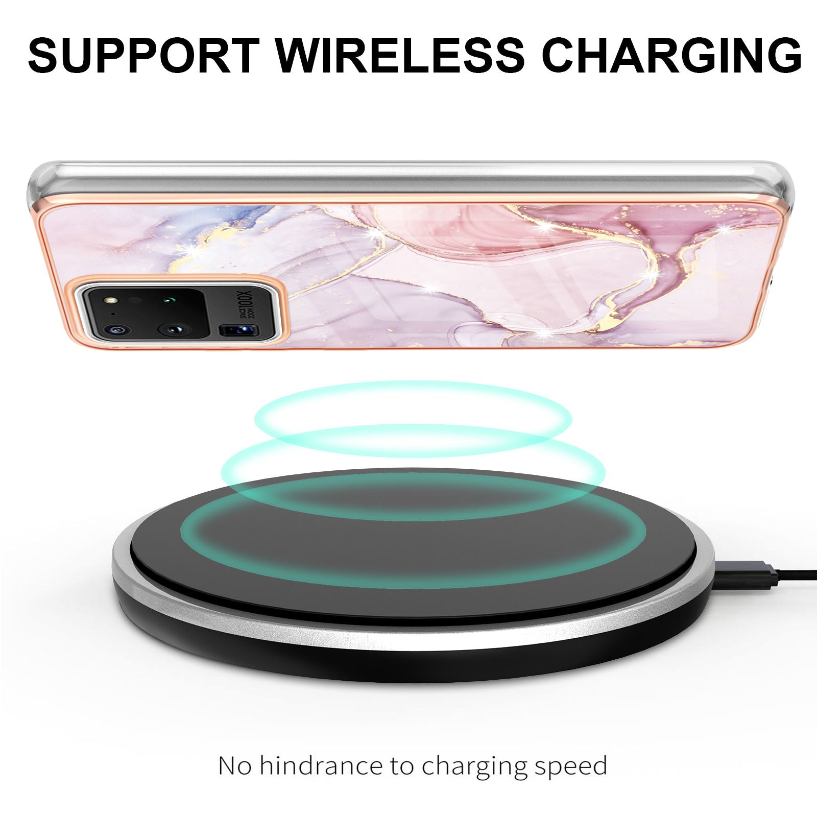 IMD IML Electroplating Marble Pattern Soft TPU Back Case Cover for Samsung Galaxy S20 Ultra - Rose Gold 005