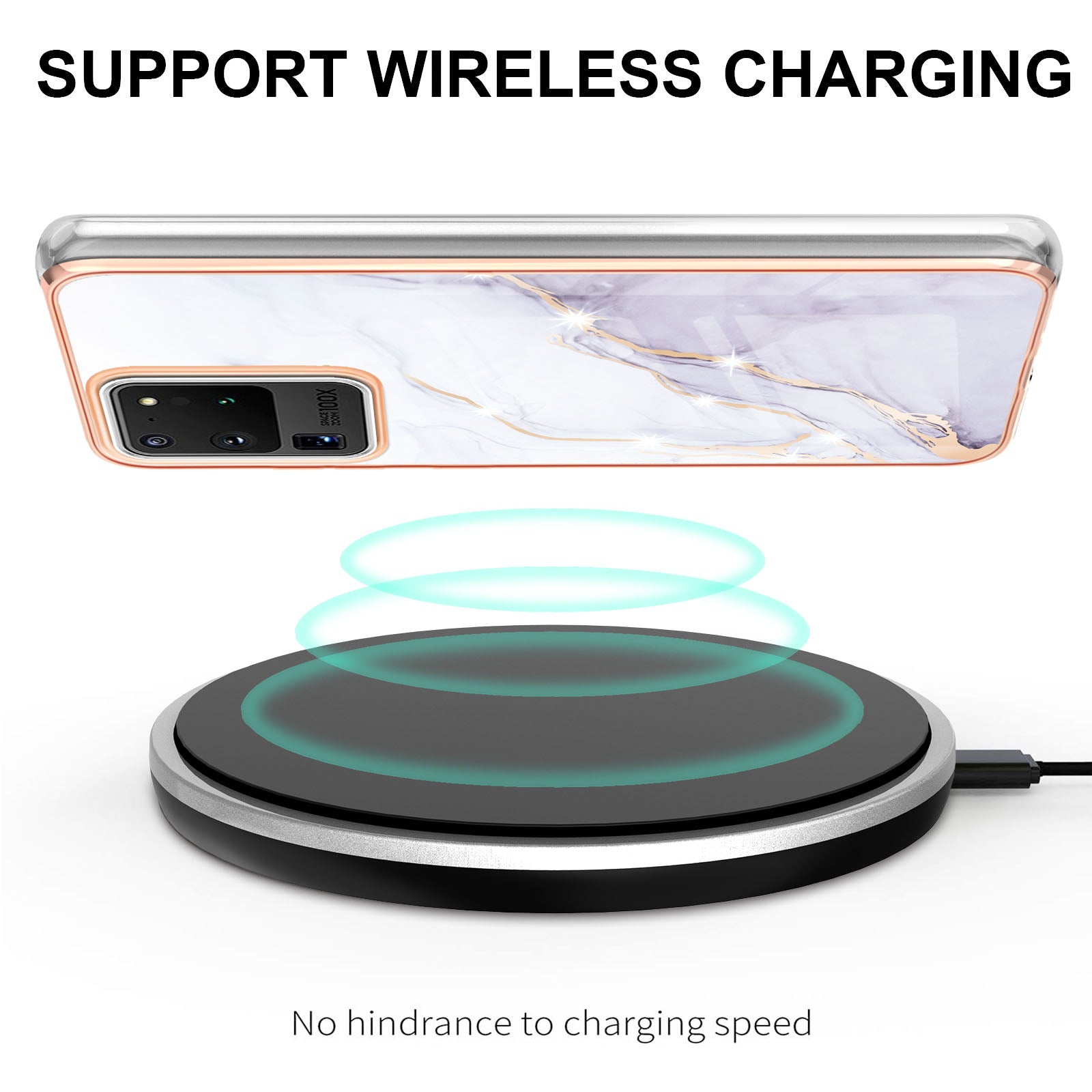 IMD IML Electroplating Marble Pattern Soft TPU Back Case Cover for Samsung Galaxy S20 Ultra - White 006
